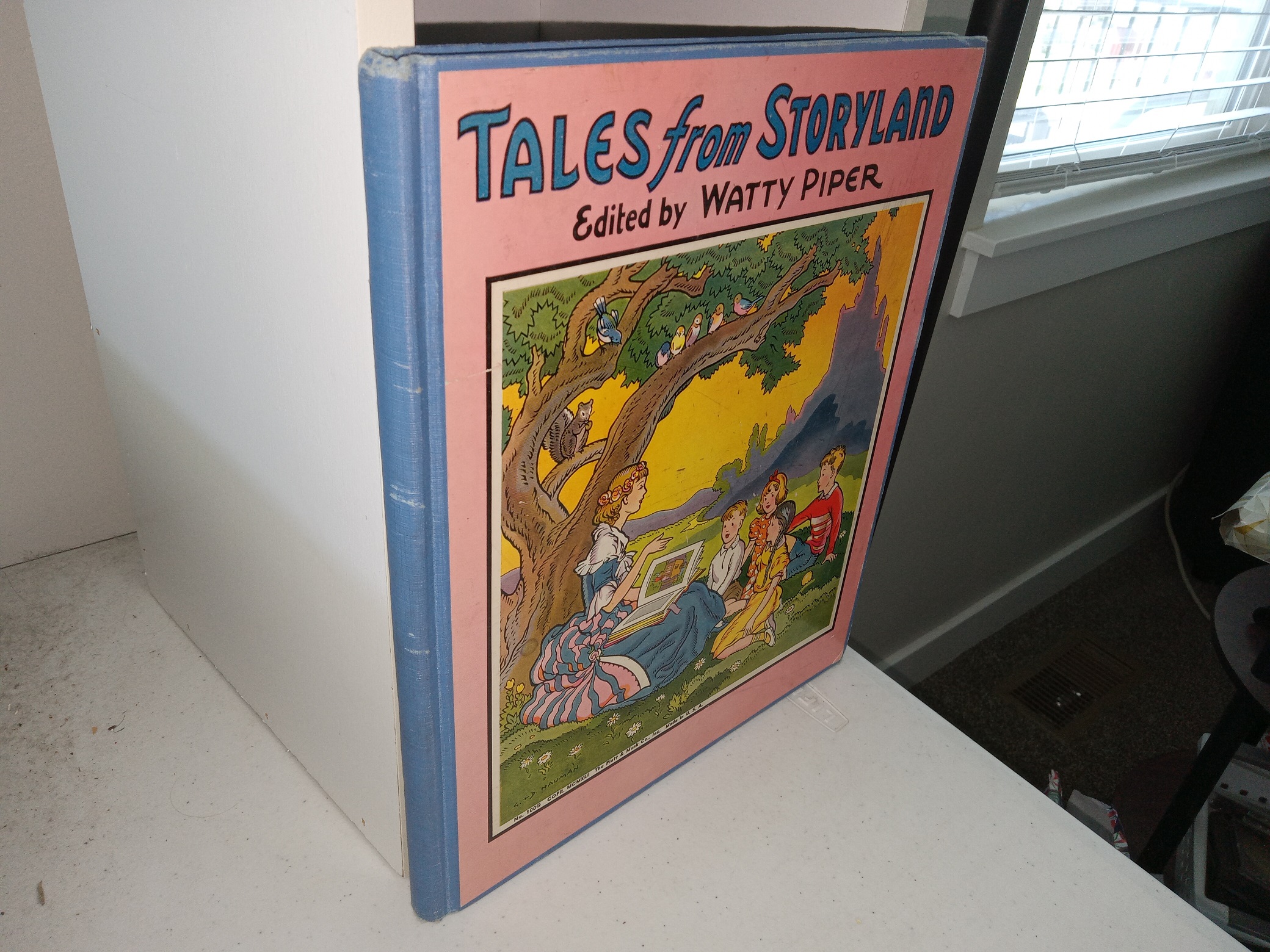 Fair condition, large, blue hardcover with no dust jacket. The cover has stains, scuff marks, scratches, tiny tears, fraying, and bent corners. The front flyleaf has writing in pencil. Text and illustrations throughout are clear and legible.
