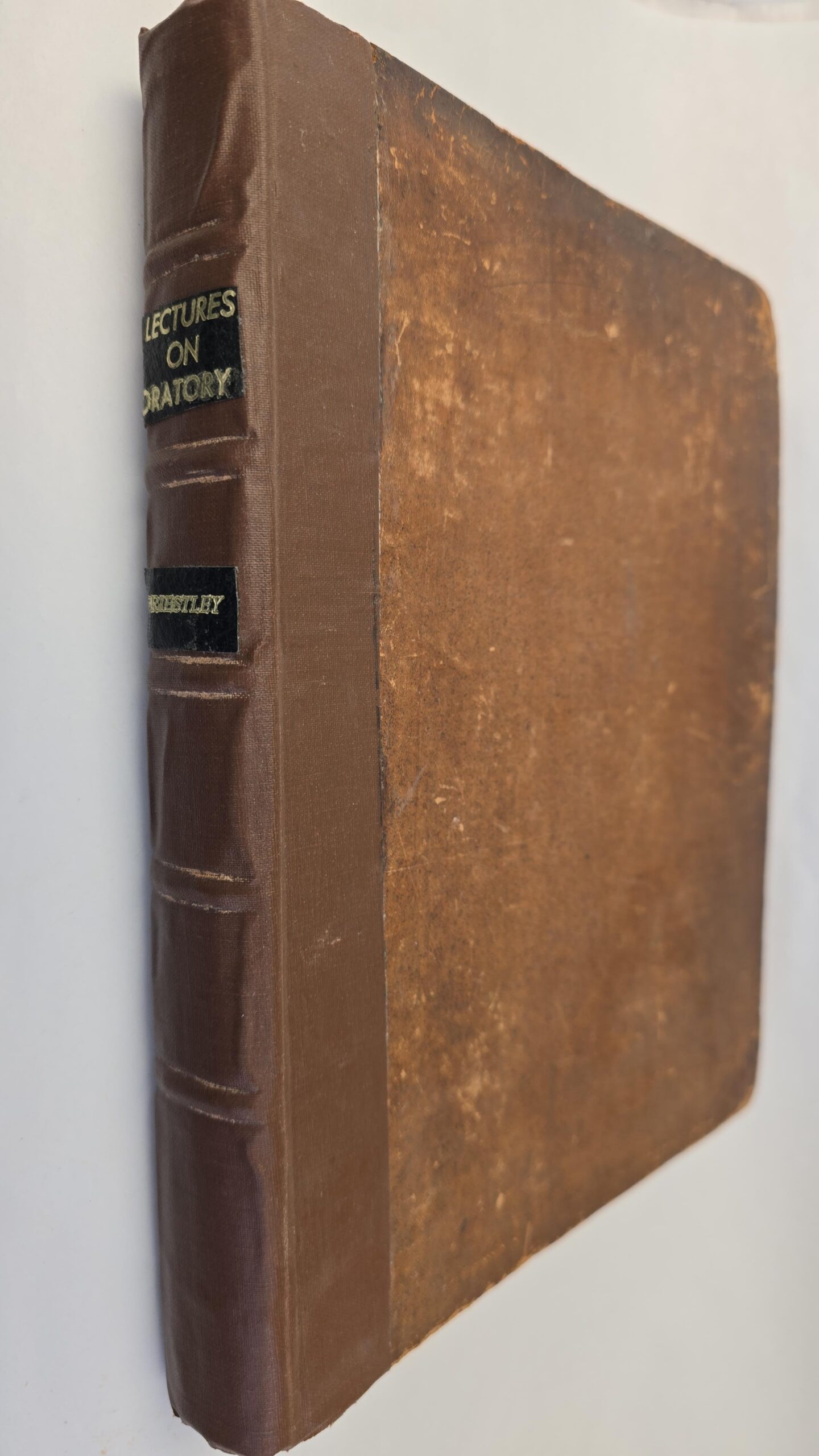 A Course of Lectures on Oratory and Criticism. 313p. Large size; Original brown leather boards, but the spine has been redone, and rather poorly; somewhat chipped and worn.
