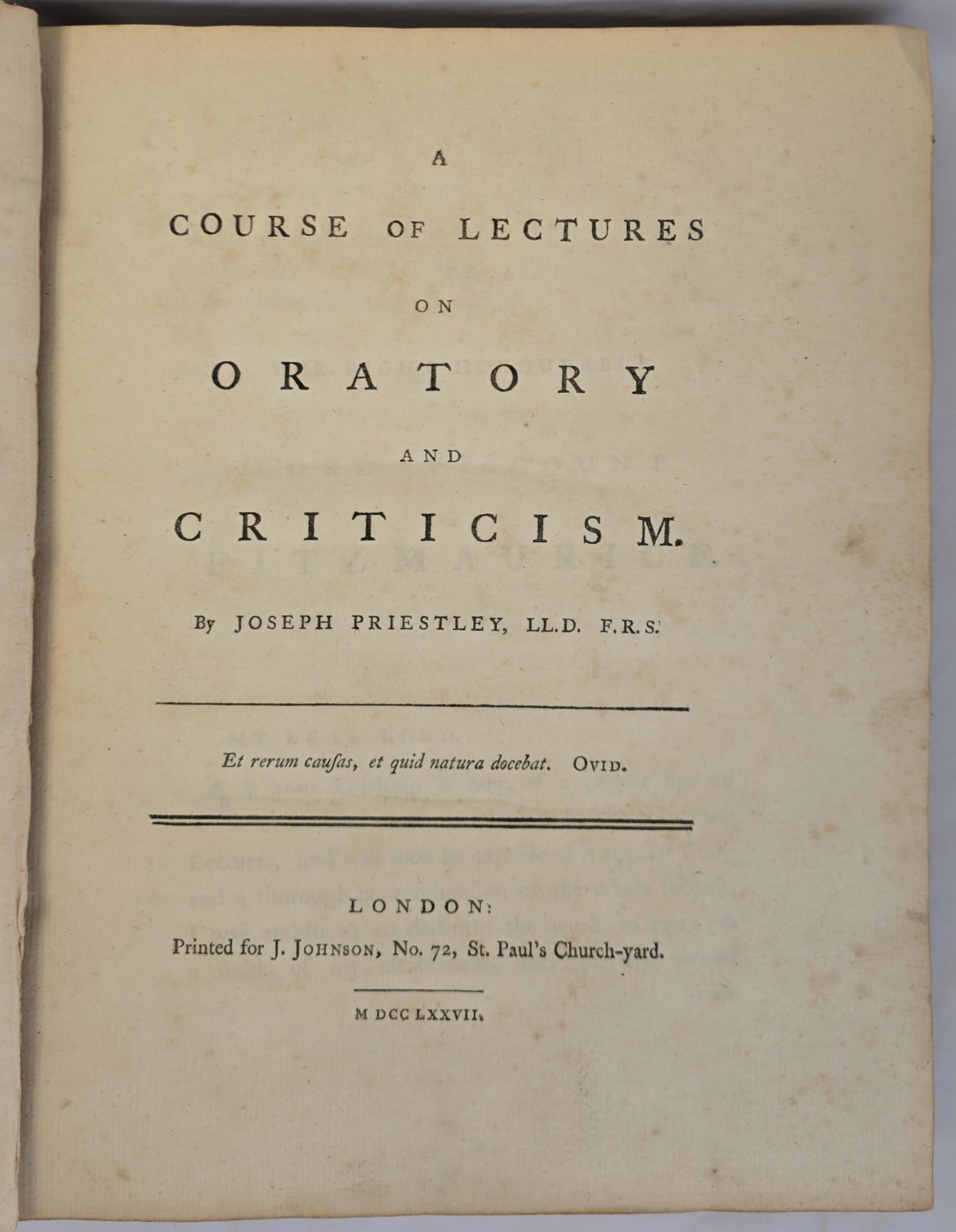 1777 — A Course on Oratory and Criticism — Joseph Priestly