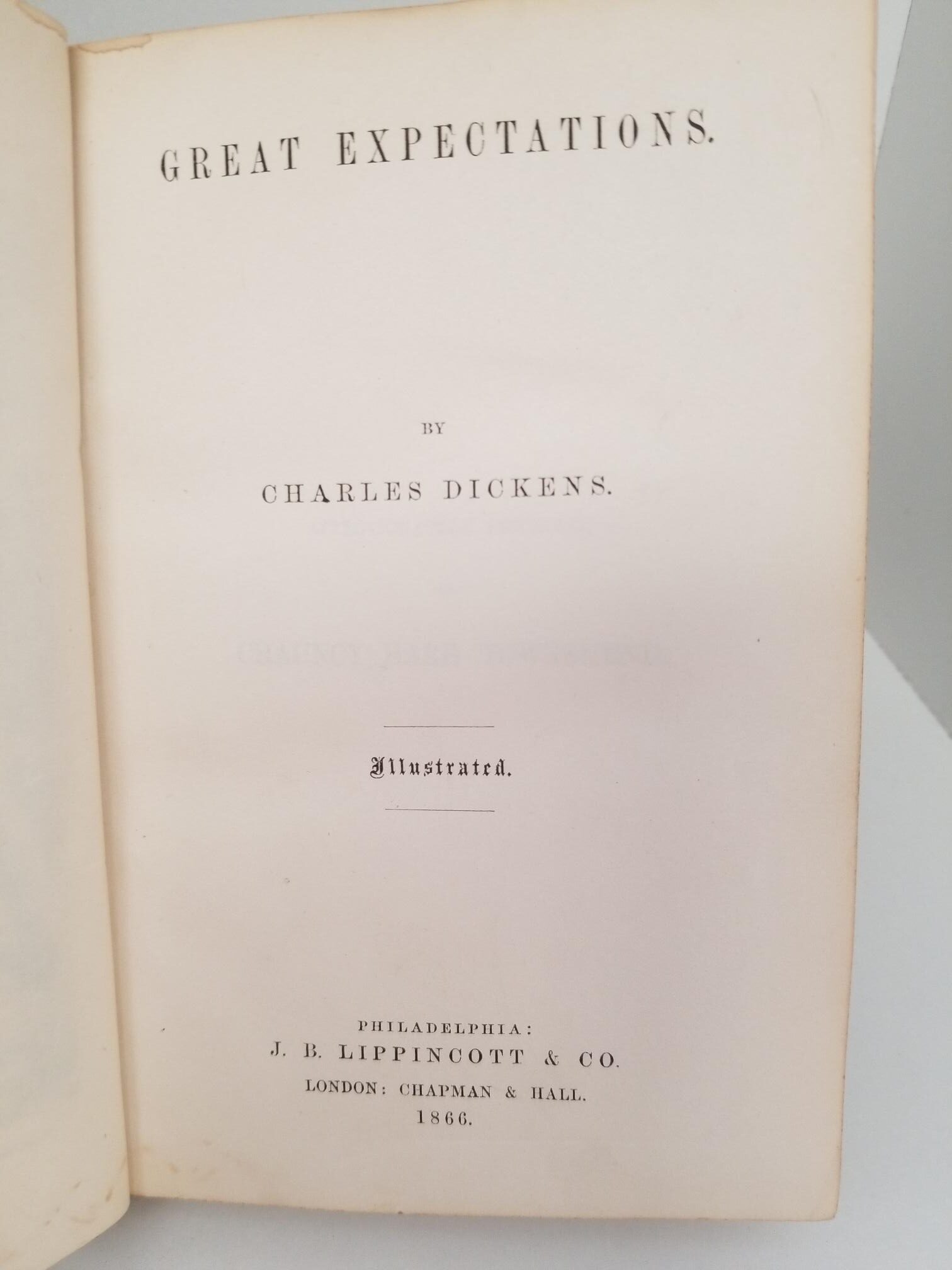 Dickens, Charles. Great Expectations. Illustrated. J. B. Lippincott & Co.: Philadelphia, London: Chapman & Hall. 1866. 268 pages.