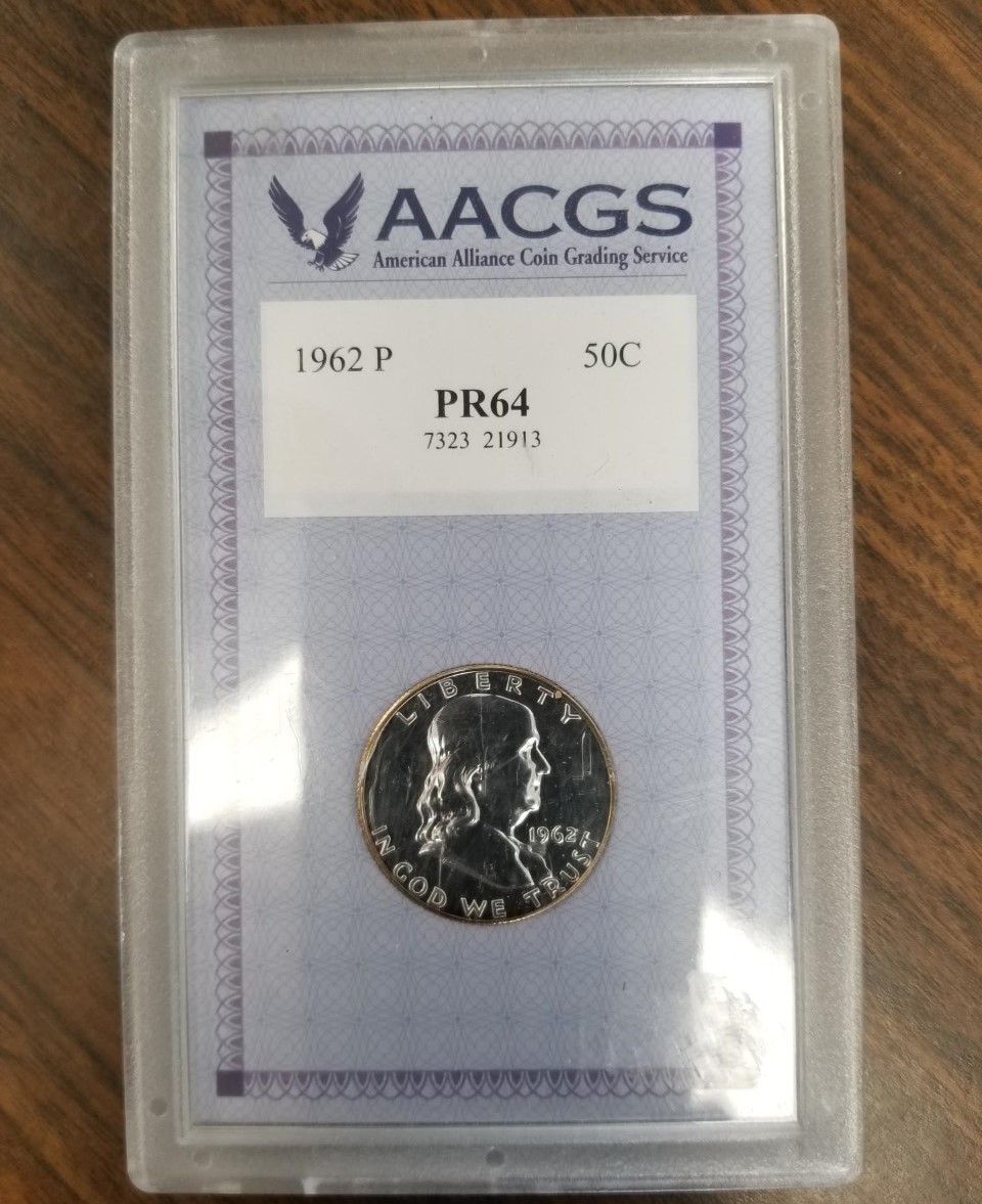 1962P Franklin Silver Half Dollar --- AACGS Grade PR64 7323 21913 -- Silver Half in Plastic Case quantity