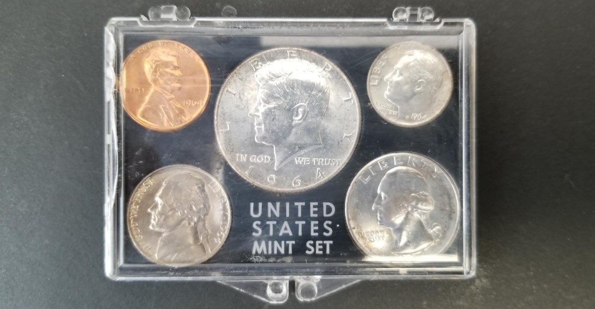 1964 — United States Mint Set — Five Coins in Plastic Case — 1964 Fifty Cent Piece / Quarter / Dime / Nickel / Penny