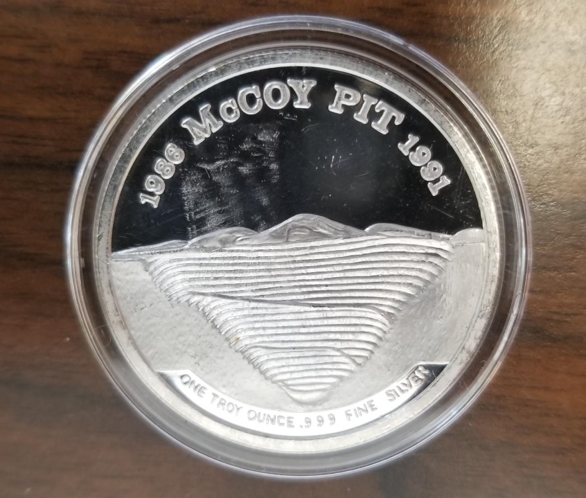 / 1986 — McCoy Pit — 1991 ——– One Troy Ounce .999 Fine Silver — Echo Bay Minerals Company – McCoy\Cove Operation — 1991