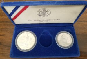 1986 — “United States Liberty Coins 1886-1986” — Dollar Coin & Quarter Coin in Case