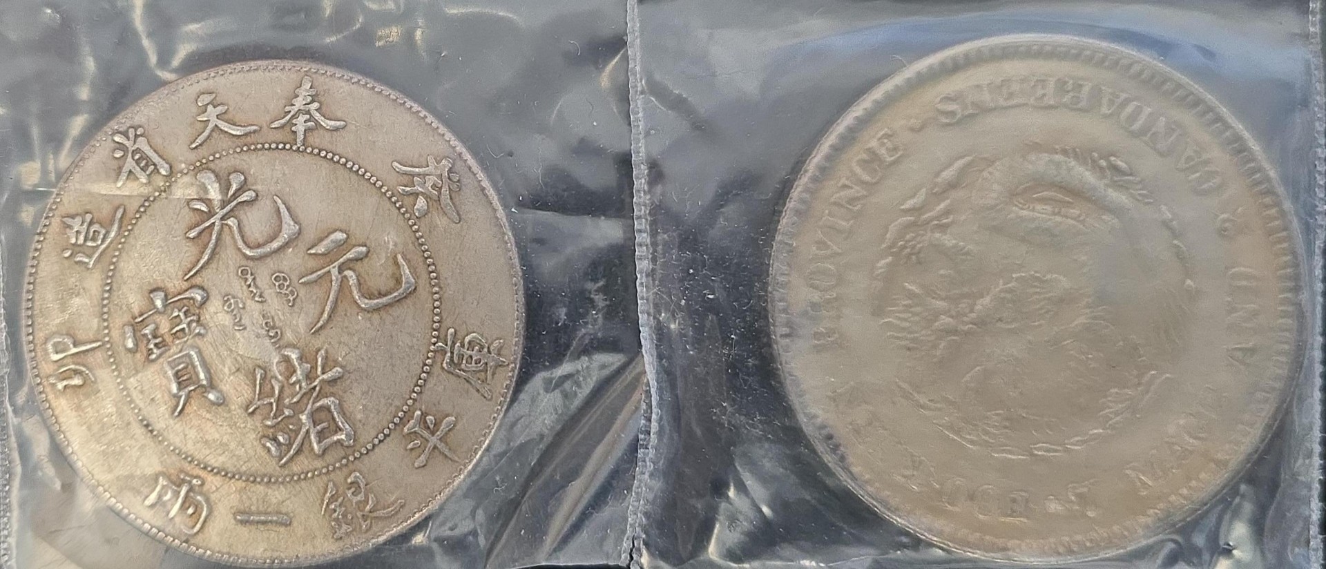 These coins measure about an inch and a half wide; we’re told they are fakes! If you purchase you get them both.