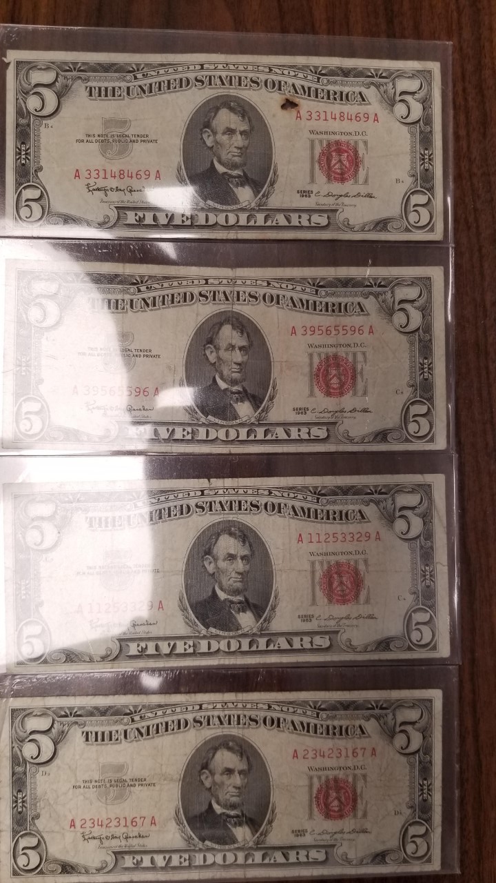 Pretty good condition except one bill has a small burn mark on it. All are dated from 1963.
