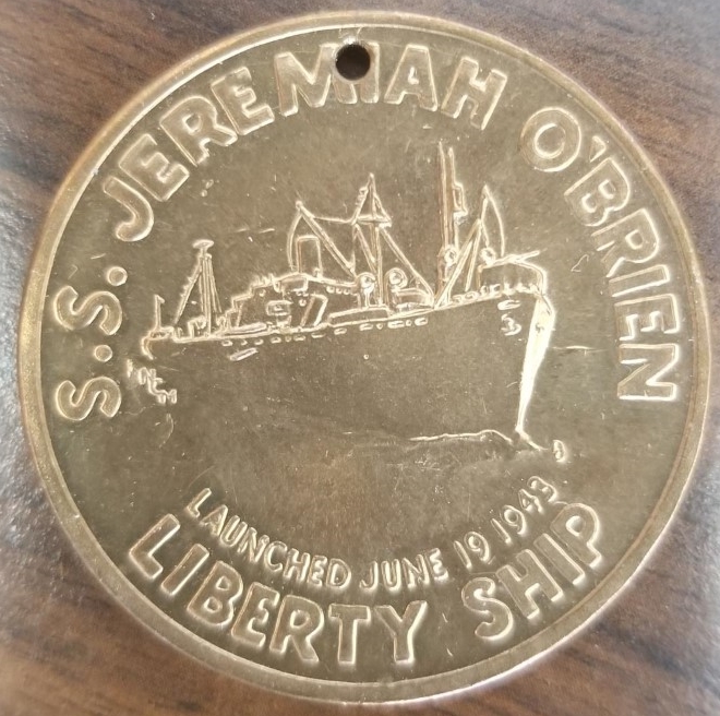 D-Day Normandy June 1944 — Coin — S. S. Jeremiah O’Brien — Launched June 19, 1943, Liberty Ship — Gold-Colored Round
