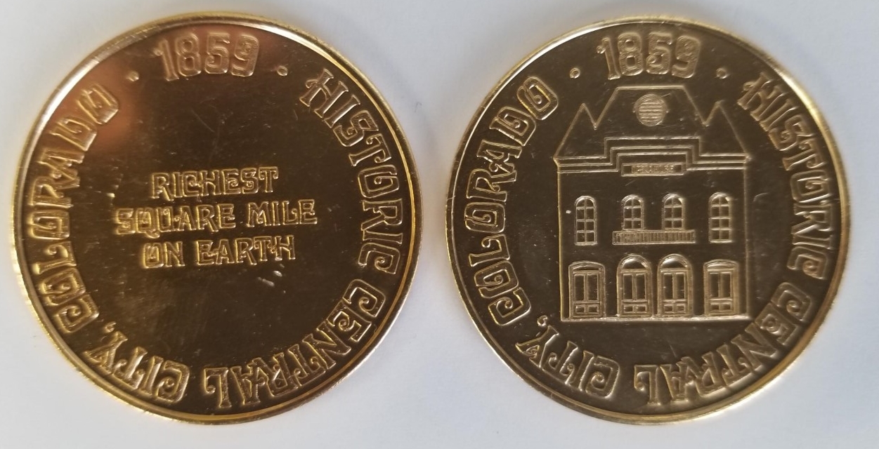 Gold-Colored Plastic Coin — Historic Central City, Colorado 1859 “Richest Square Mile on Earth”