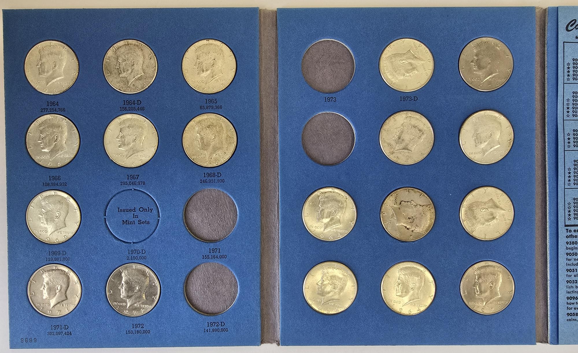 John F. Kennedy Half Dollar Collection Starting 1964 — Blue Book — With 19 Half Dollars Included