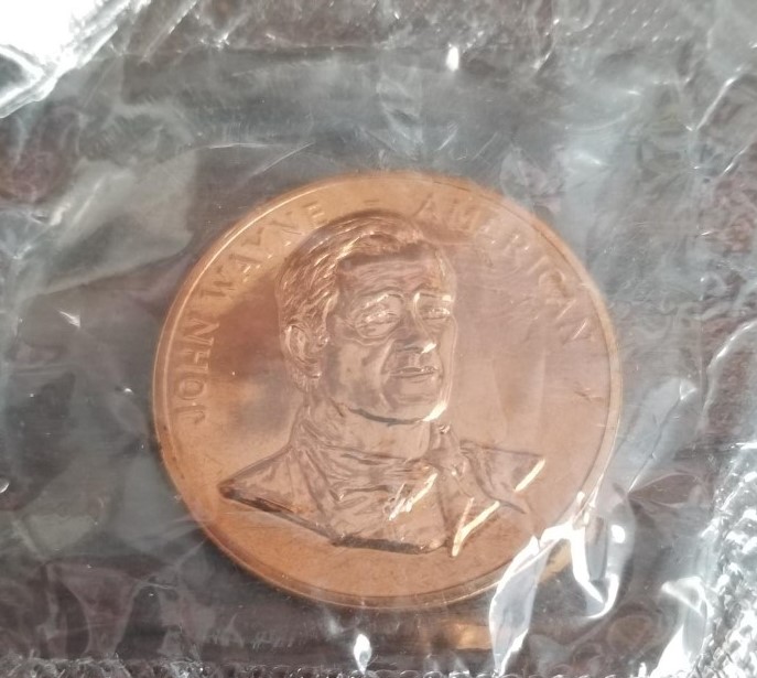 This coin looks like about the size of a half dollar. It appears to be copper, but we don’t know; its in plastic.