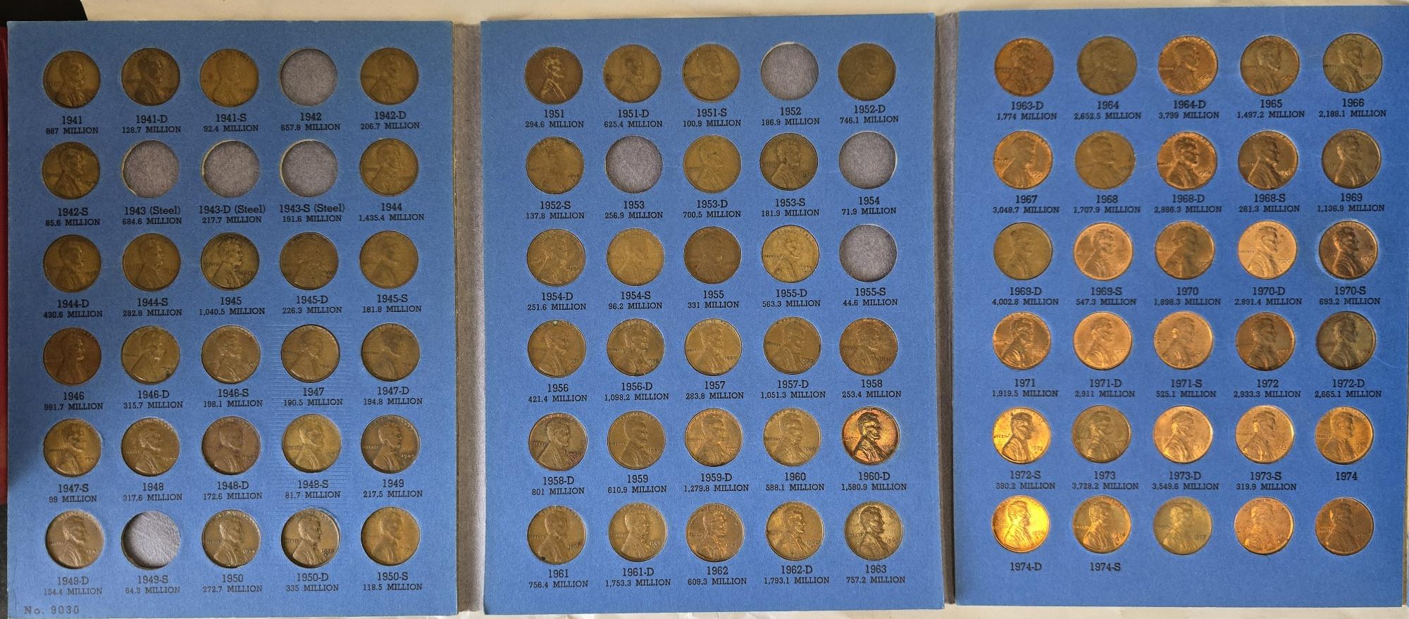Lincoln Cent Collection Starting 1941, Number Two — Blue Book — Containing 81 Nickels (Only 9 Missing)