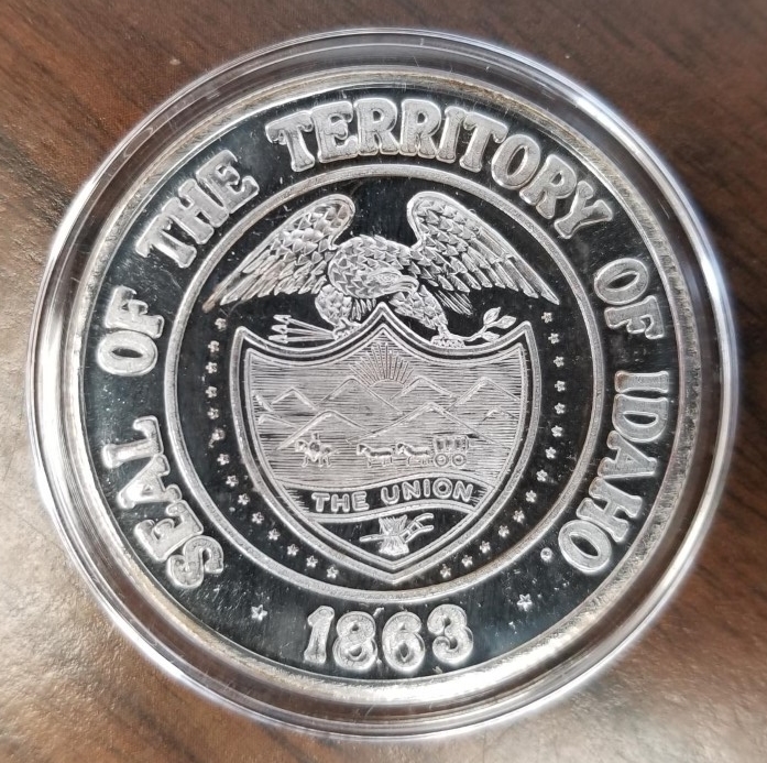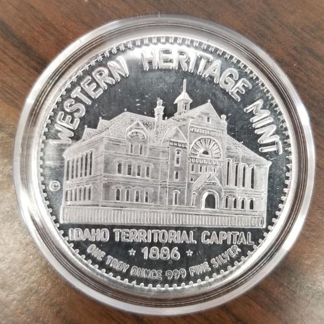 Silver Coin — Western Heritage Mint — Seal of the Territory of Idaho 1868 — Idaho Territorial Capital 1886 — One Troy Ounce .999 Fine Silver