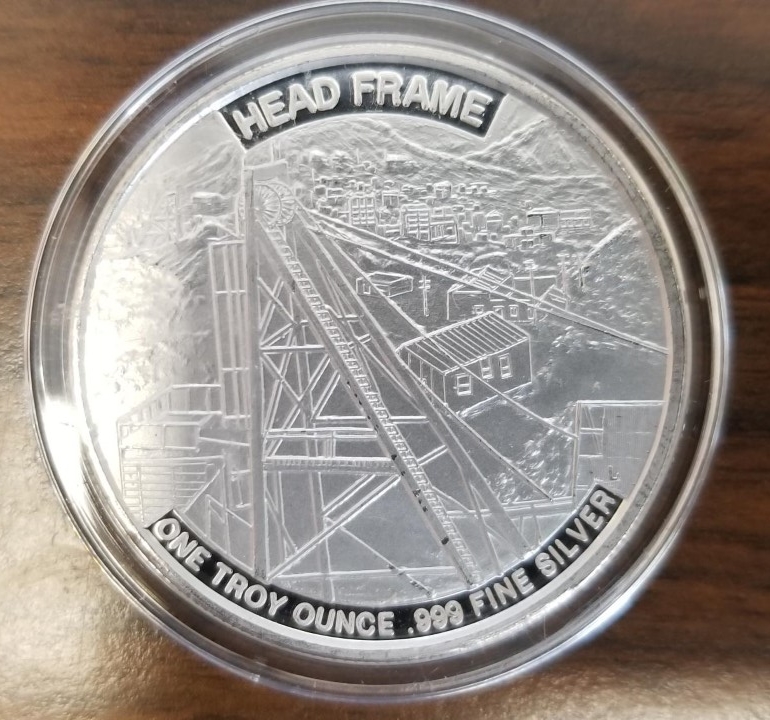 Silver Round — Echo Bay Minerals Company – McCoy\Cove Operation — 1992 — Head Frame — One Troy Ounce .999 Fine Silver
