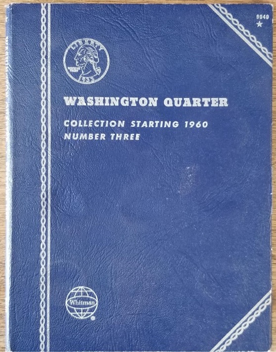 Washington Quarter Collection Starting 1960, Number Three — Blue Book with 2 1964 Silver Quarters and 25 Later Ones!