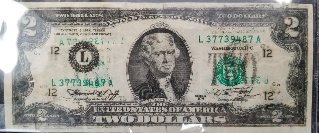 You can decide from our photograph if this is some kind of error bill, or one that got wet or got tampered with. It looks like the left and right halves came off a bit on the other half. The back of the bill is normal.