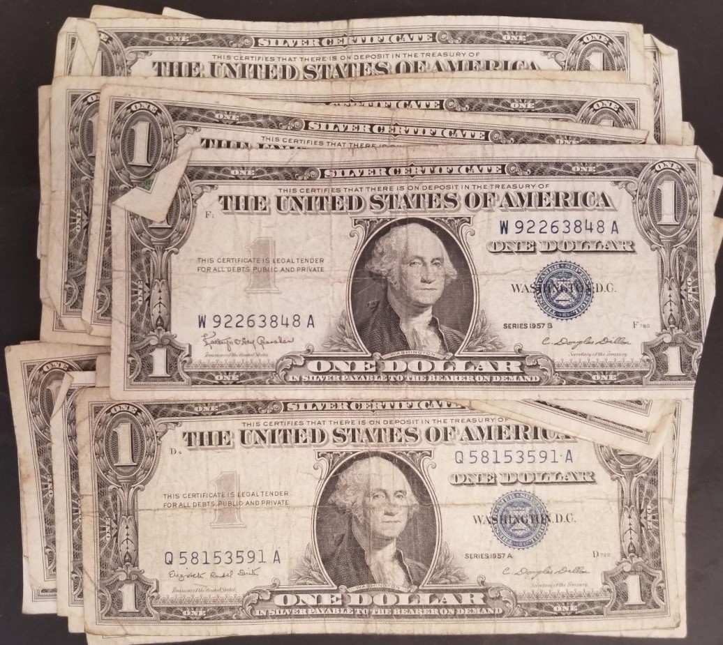 / 31 Silver Certificate One Dollar Bills — All in Good to Fair Condition — 1957 — [All are 1957A or 1957B]