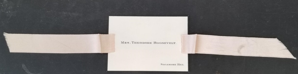 Small card that states: “Mrs. Theodore Roosevelt” and “Sagamore Hill”.