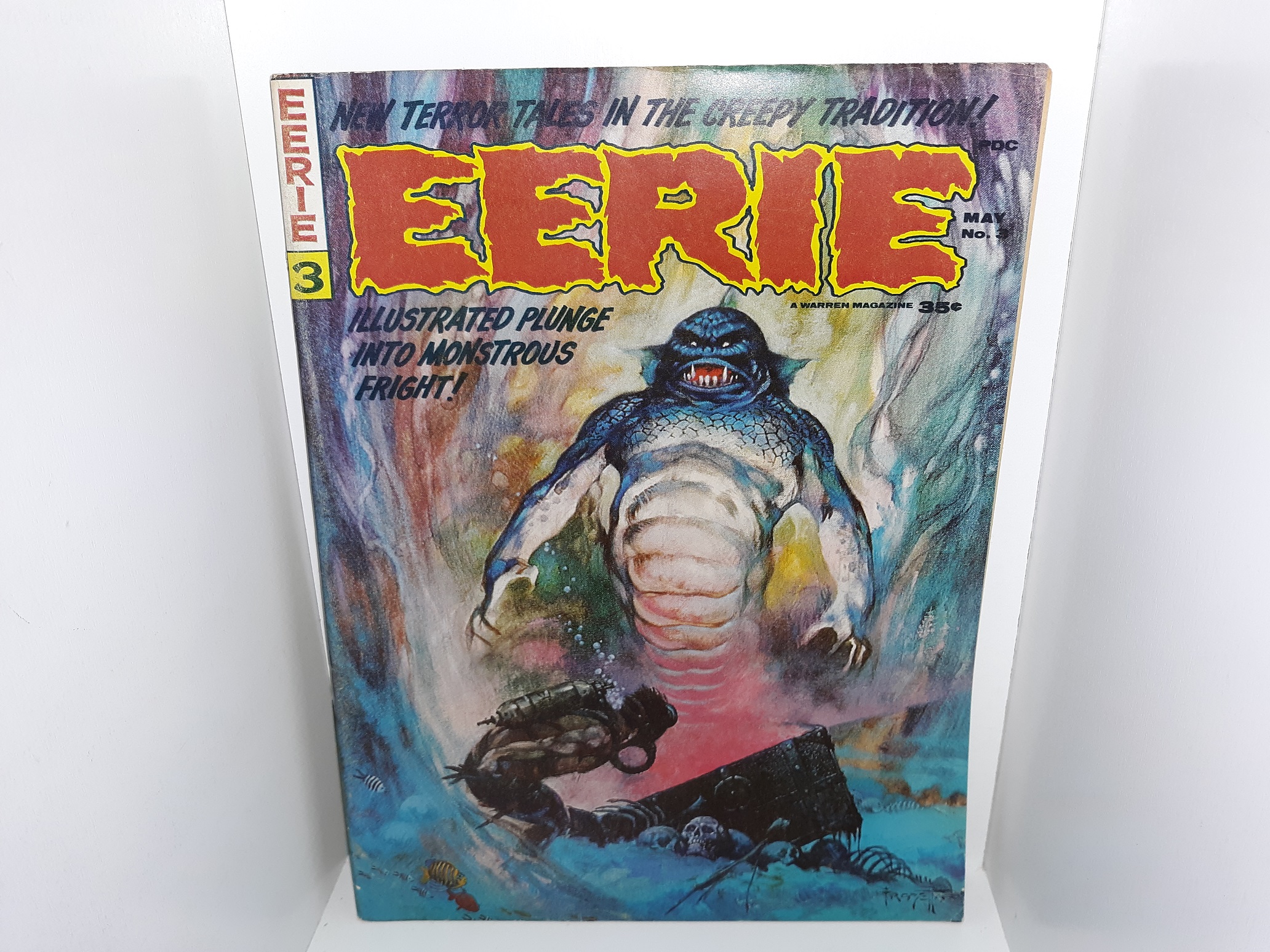 Fair condition, large, thin, staple-bound, softcover comic book. The cover has stains, small pieces torn off, some wrinkling, and minor wear at the corners and edges. The first page has writing in pencil. Text and illustrations throughout are clean, clear, and legible.
