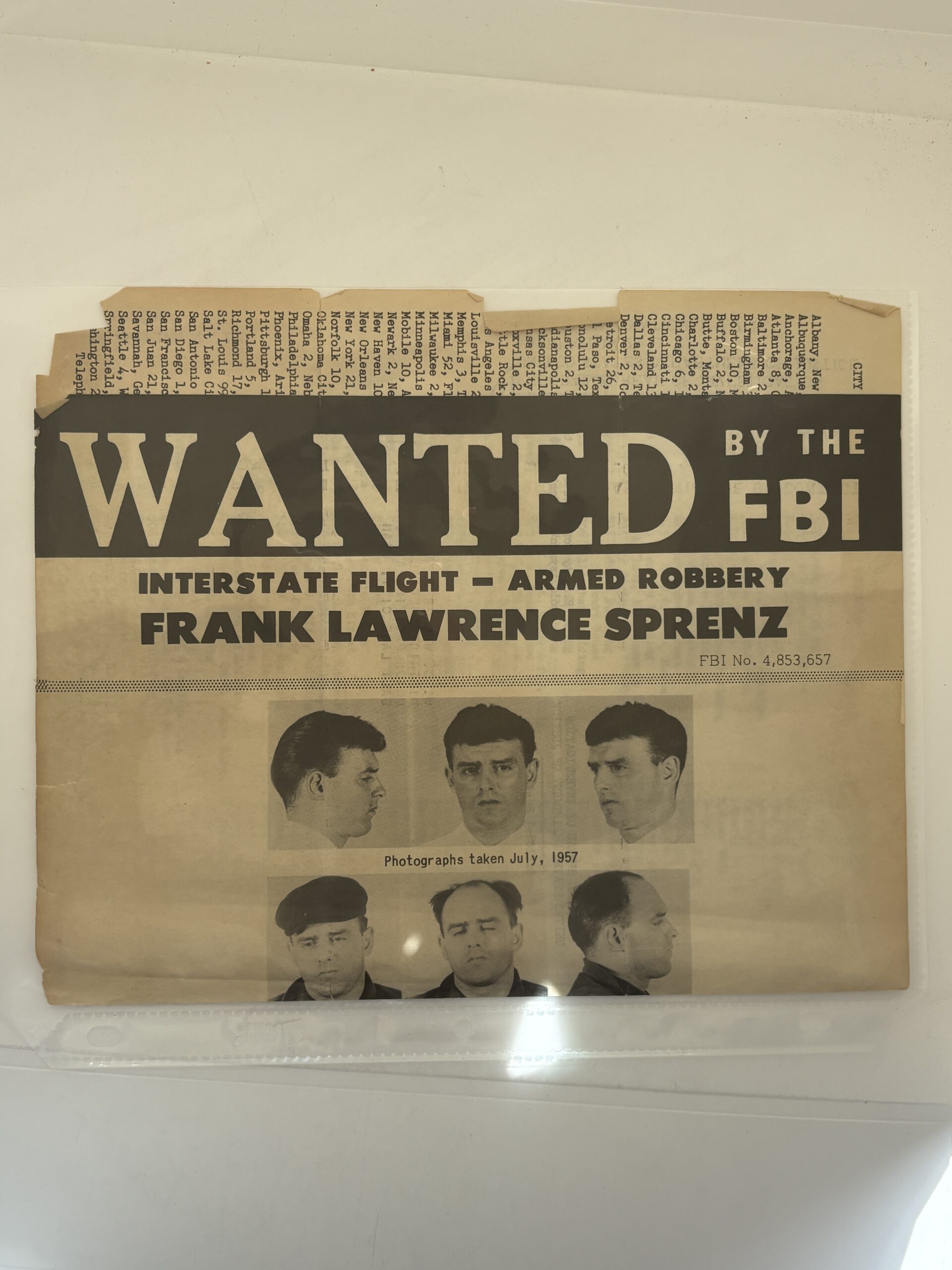 Frank Lawrence Sprenz FBI Wanted poster 1958