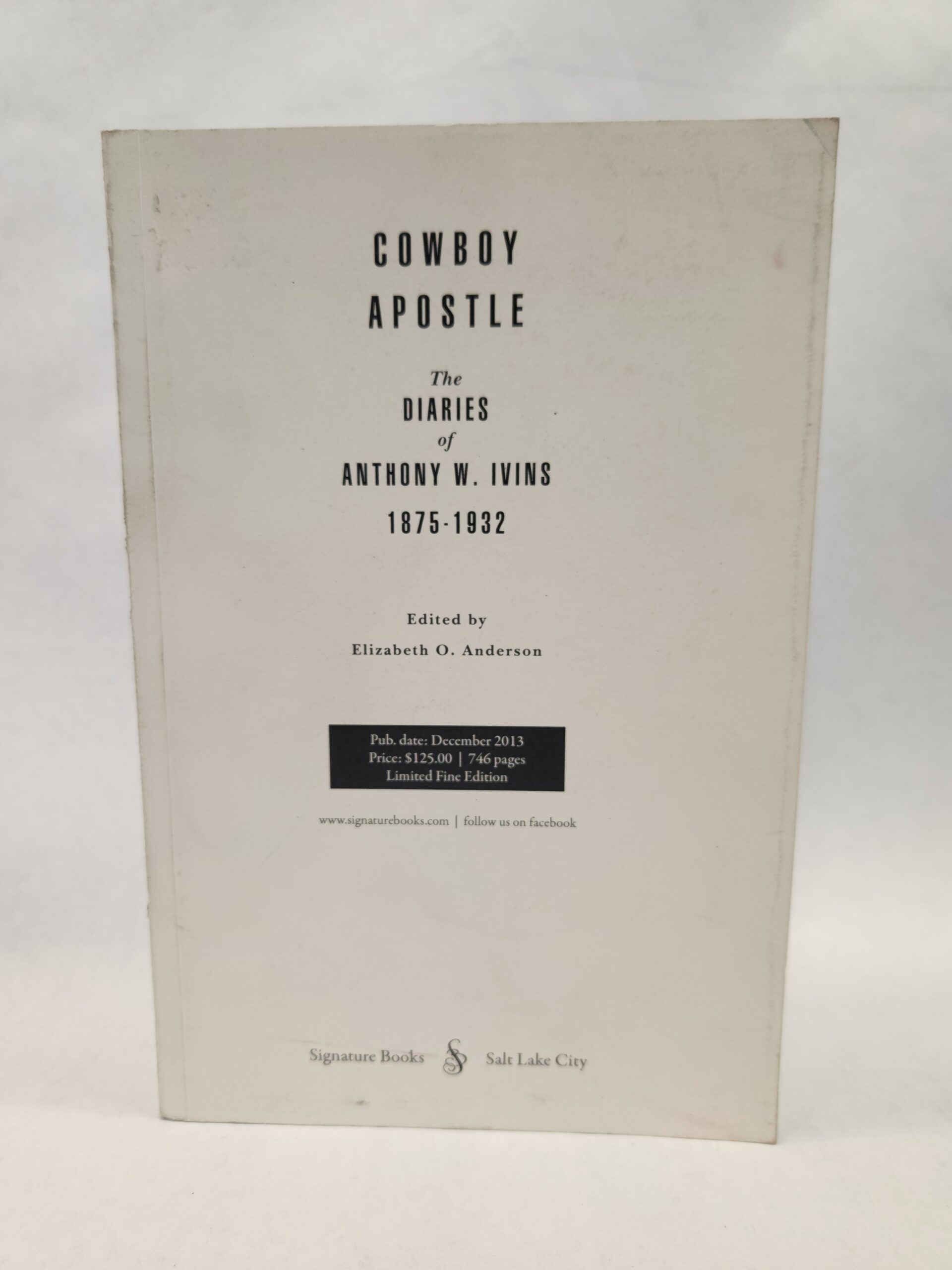 Cowboy Apostle:: The Diaries of Anthony W. Ivins 1875-1932 (2013, Paperback) Binding is good. No writing/marks on the pages.Corner and edges show some shelf wear. Cover, front and back, has some smudge marks/light scuffs/light scratch marks. Spine has a small dent mark.