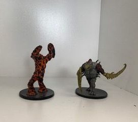 These are 2 figurines. The orange and black character has the name on it is Magma Brute and the other one has the name Hook Horror on the bottom. They are in good condition.