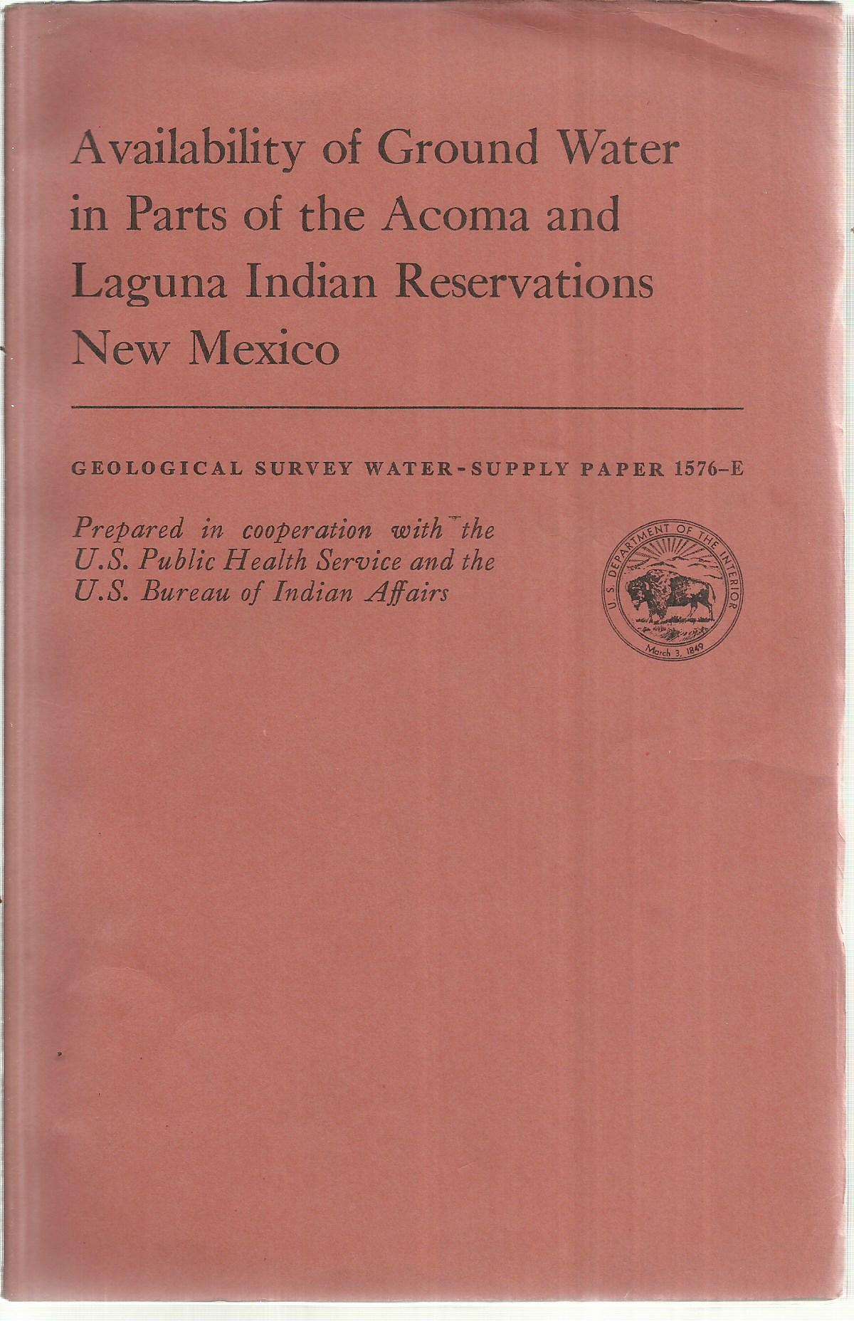 Availability of Groundwater in Parts of the Acoma and laguna Indian Reservations, New Mexico (Geological Survey Water-Supply Paper 1576E)