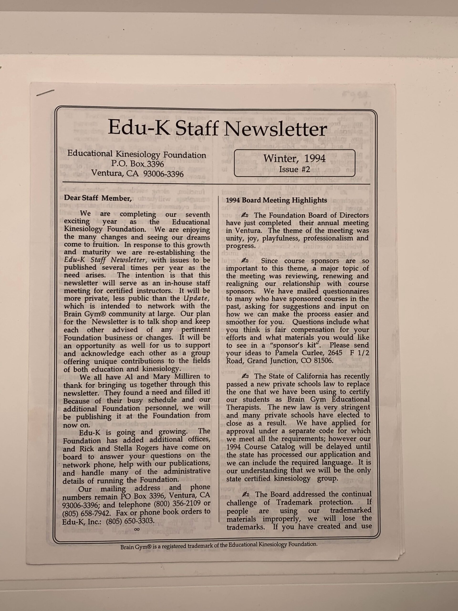 Edu-K Staff Newsletter Winter, 1994 Issue #2