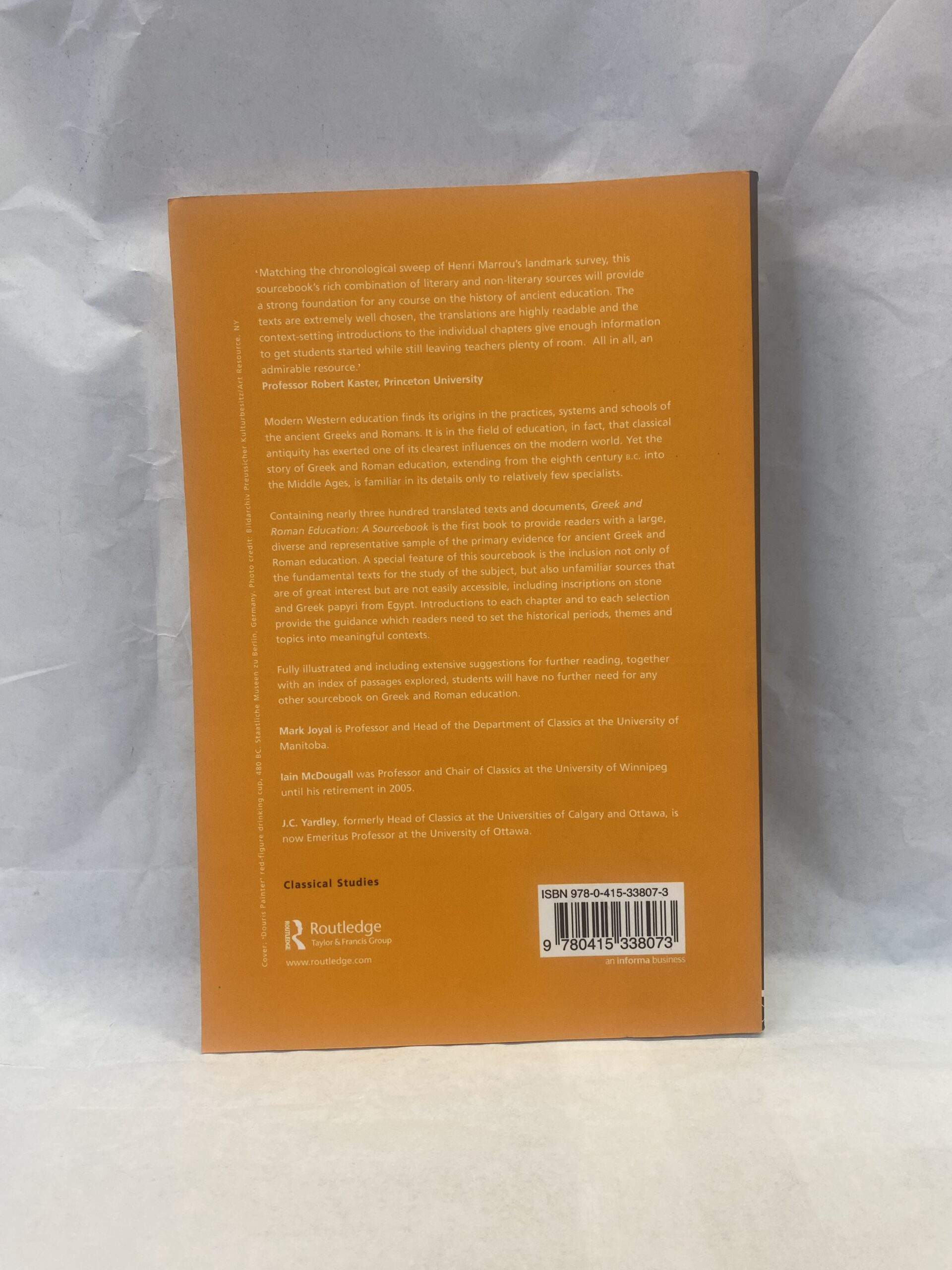 Greek and Roman Education, A Sourcebook by Mark Joyal, Iain McDougall, and J. C. Yardley. Paperback, 2009.