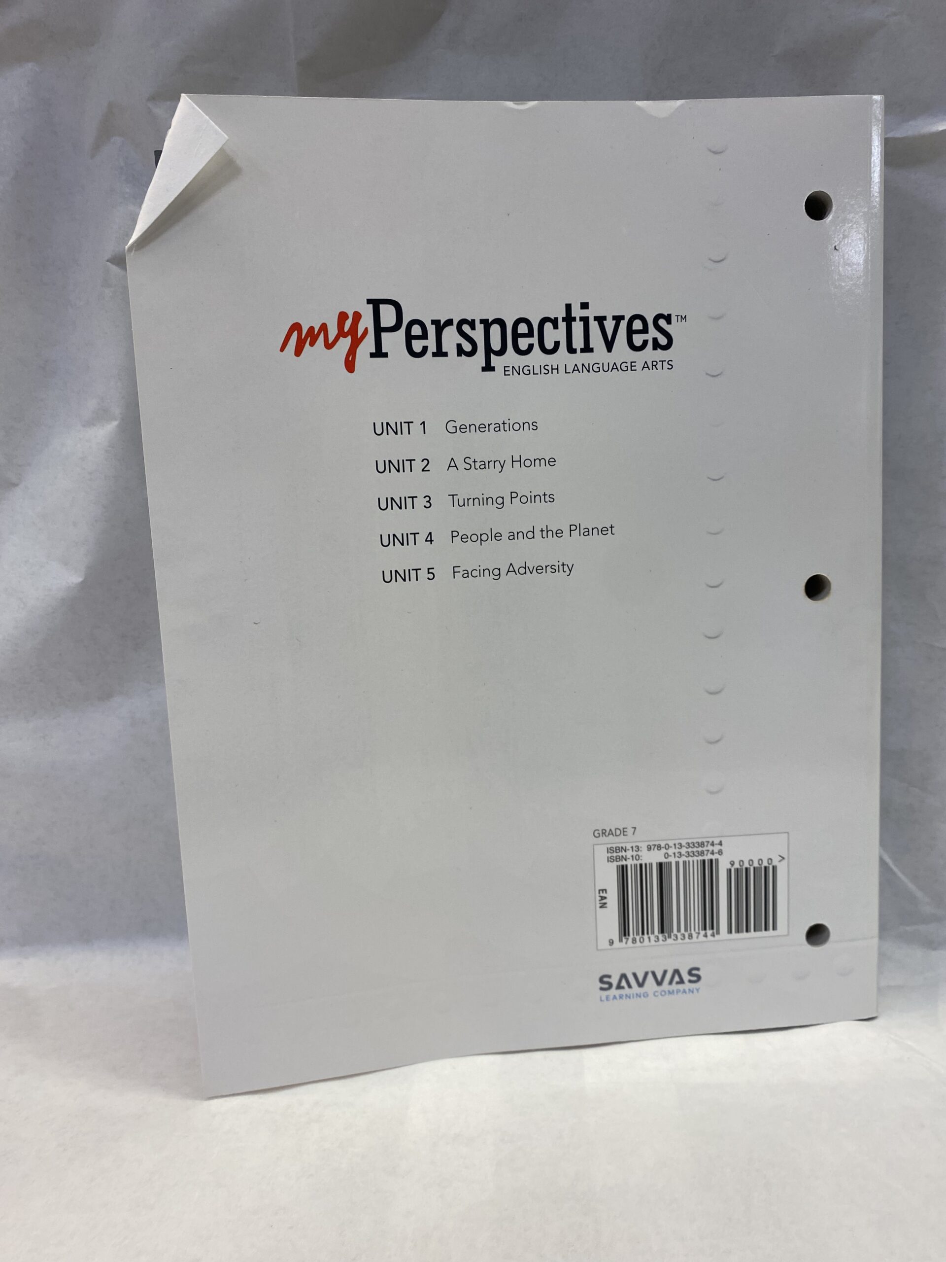 My Perspectives, English Language Arts for Grade 7 from Savvas Learning Company. Paperback, 2017.