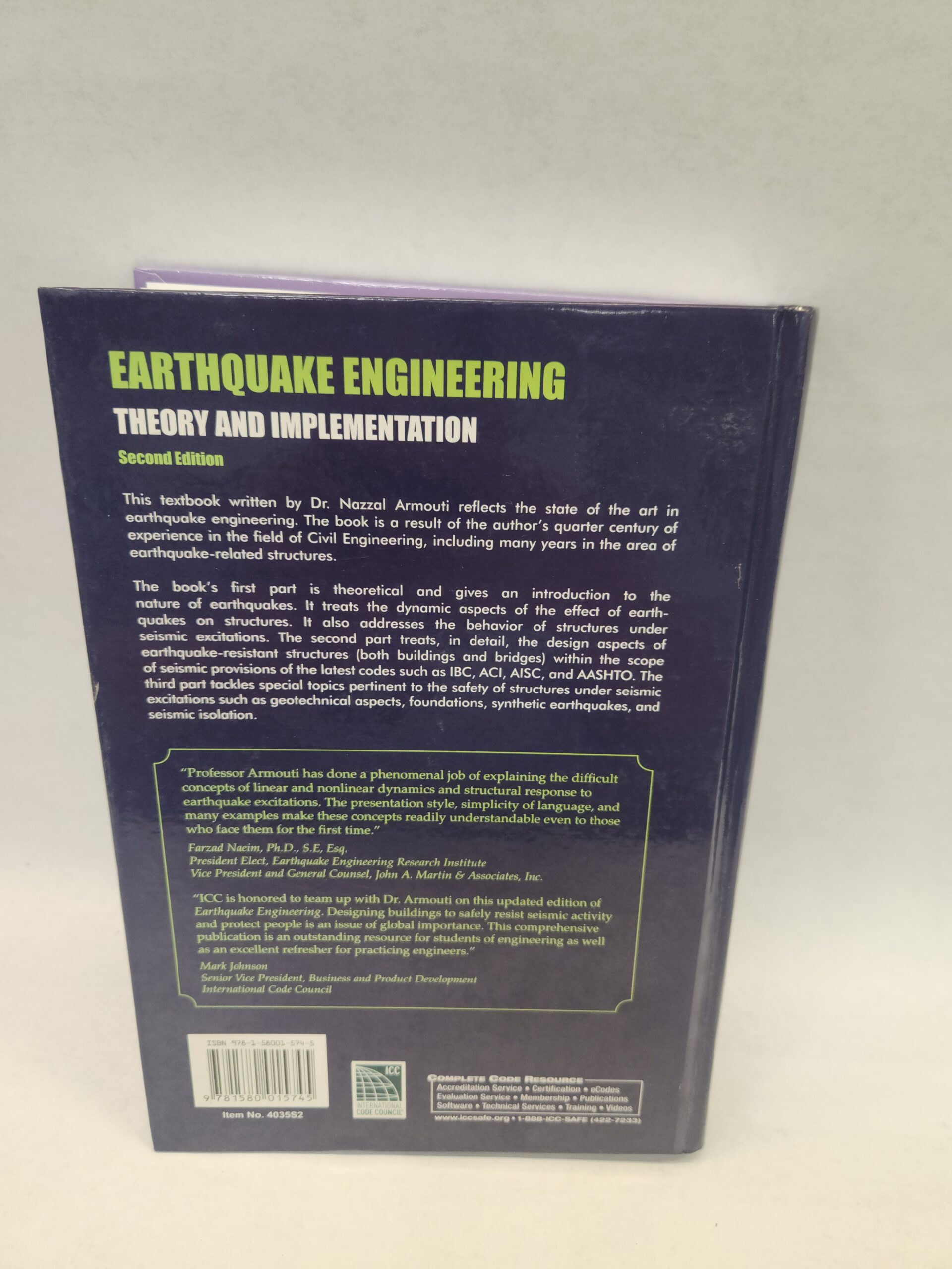 Earthquake Engineering:: Theory and Implementation Second Edition (2008, Hardcover) CD included. No marks/writing on pages. Corner and edges show little shelf wear. Binding is good.