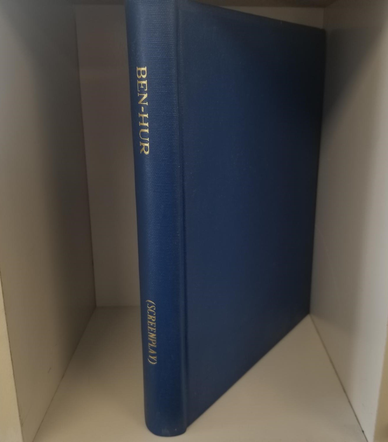This larger size blue hardcover contains a photo-copied copy of the screenplay to the 1959 movie Ben-Hur. The movie came from the bestselling novel by Lew Wallace entitled Ben-Hur: A Tale of the Christ. The movie, of course, starred Charlton Heston
