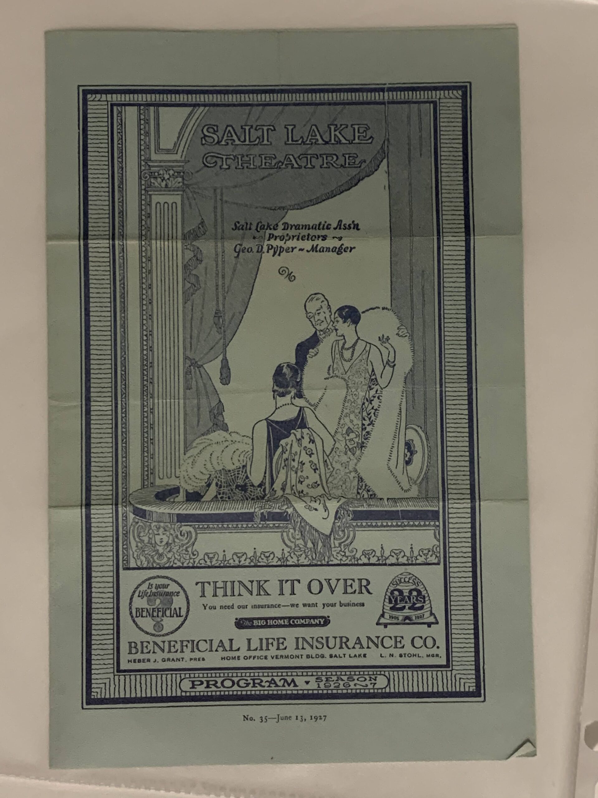 Think It Over ~ You Need Our Insurance – We Want Your Business – No. 35-June 13, 1927 – playbill