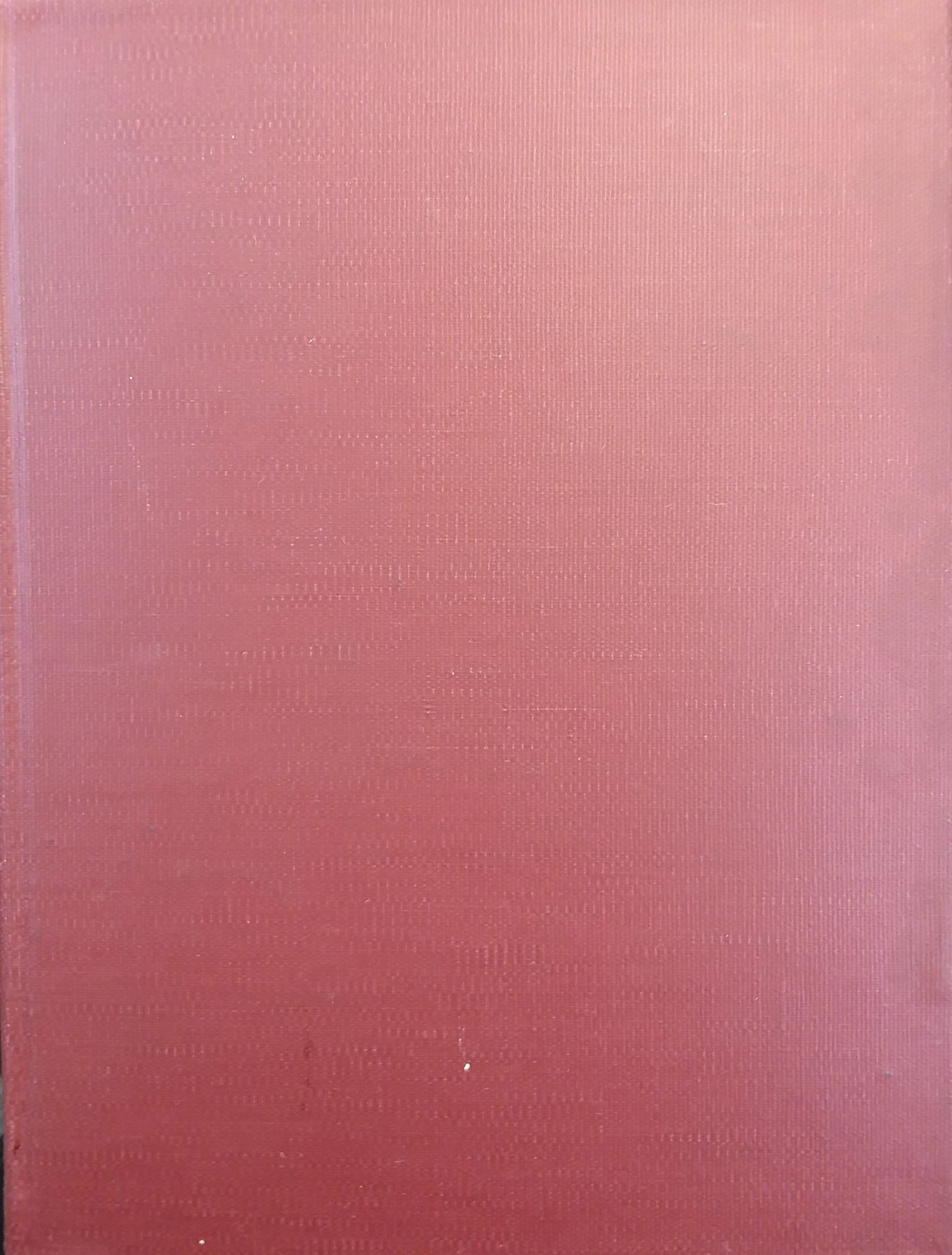 Tall dark red hardcover with gold lettering on the spine. Some minor shelf wear with some small smudges on both covers. Pencil markings on the flyleaf, but otherwise the text throughout is clean, clear, and legible. In fair condition.
