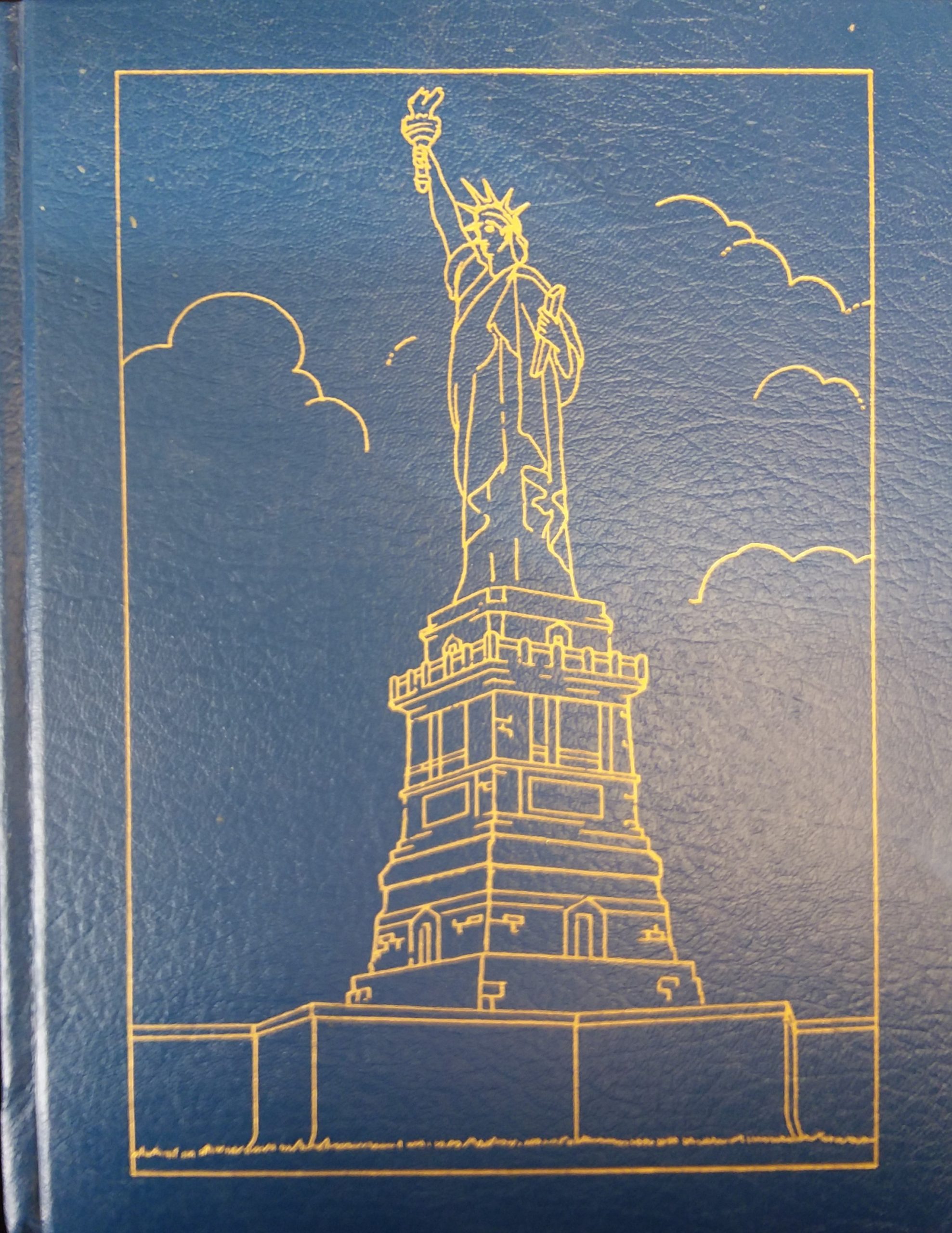 Large dark blue hardcover with gold embossing on the cover. Some minor shelf wear with smudges and flecks of what looks like paint on the front cover. Pencil markings on the flyleaf, but otherwise the text throughout is clean, clear, and legible.