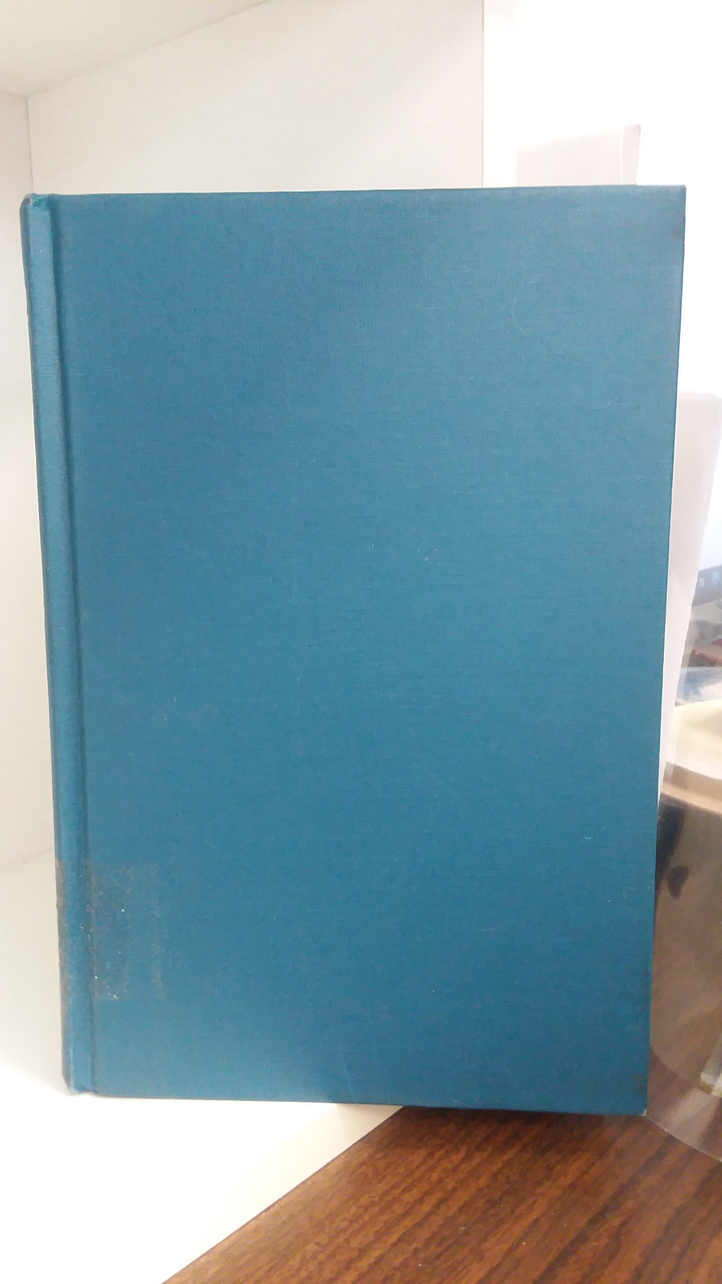 Some minor shelf wear with significant scuffs and smudges and scratches on both covers. Remnants of a sticker on the covers and the spine. Sticky. Sticker on the inner front cover. Stamps on the inner front and back cover and the sides of the pages. Pencil and pen markings on the first few pages, but otherwise the text throughout is clean, clear, and legible. In fair condition.