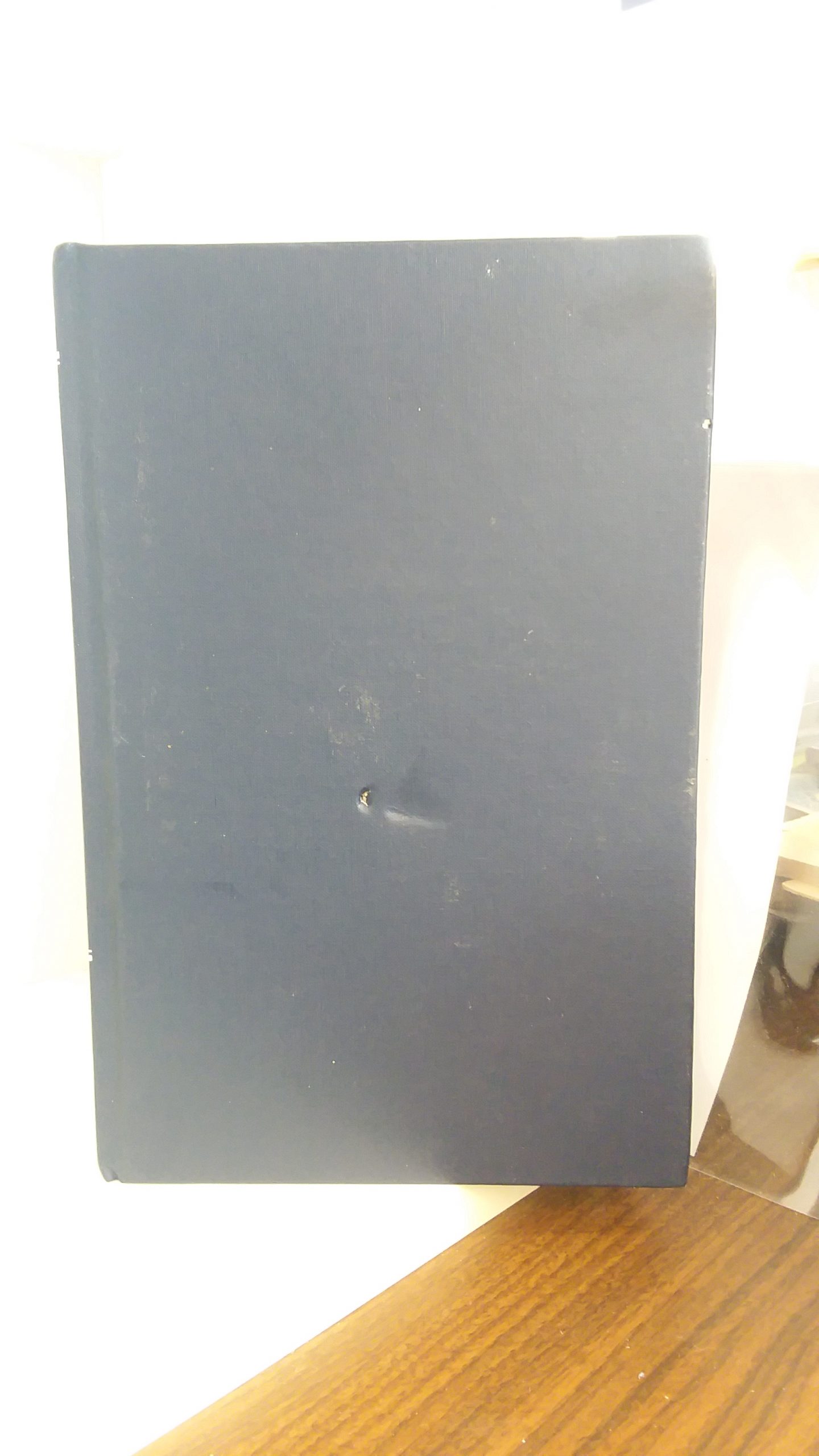 Minor shelf wear with some small scuffs and smudges on both covers. Large dent on the front cover and a smaller one on the back cover. Pencil markings on the flyleaf, but otherwise the text throughout is clean, clear, and legible. In fair condition. Stamp on the title page and the inner back cover.