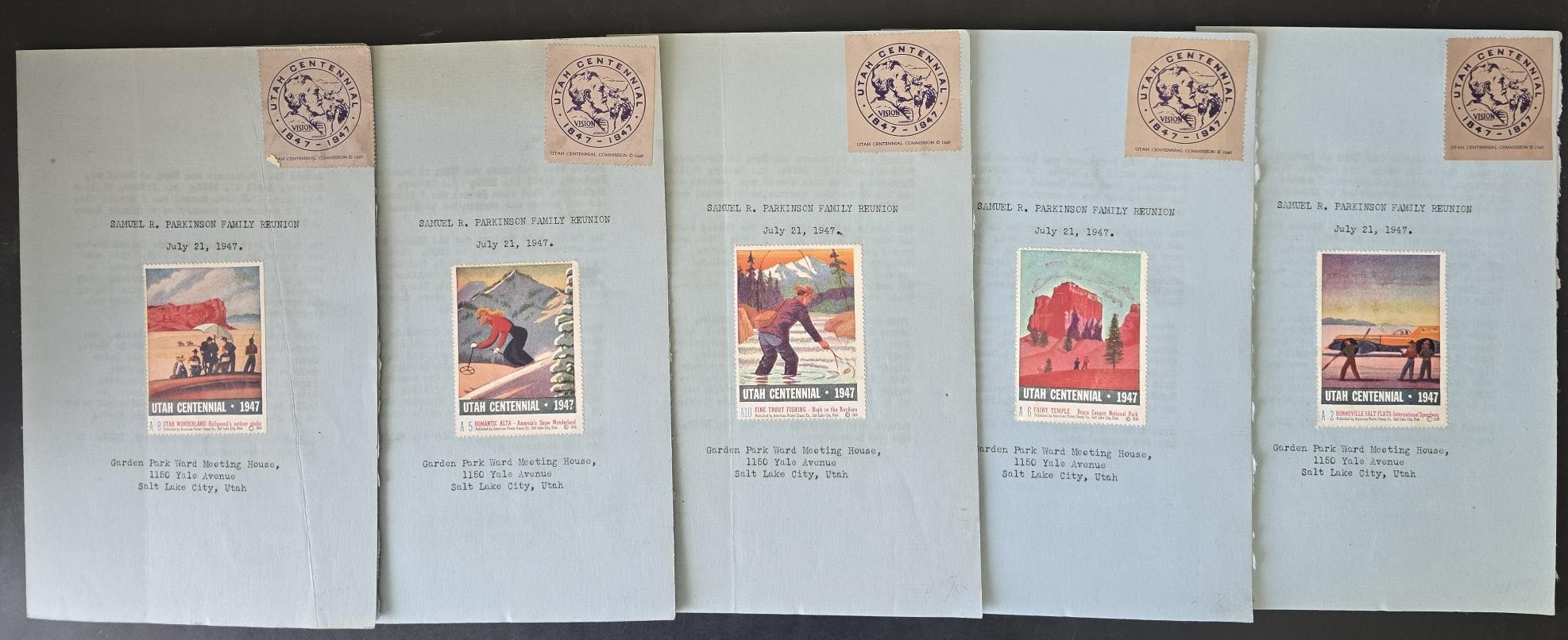 Samuel R. Parkinson Family Reunion July 21, 1947 -- Garden Park Ward Meeting House -- 4-Page Program -- [5 Copies] quantity