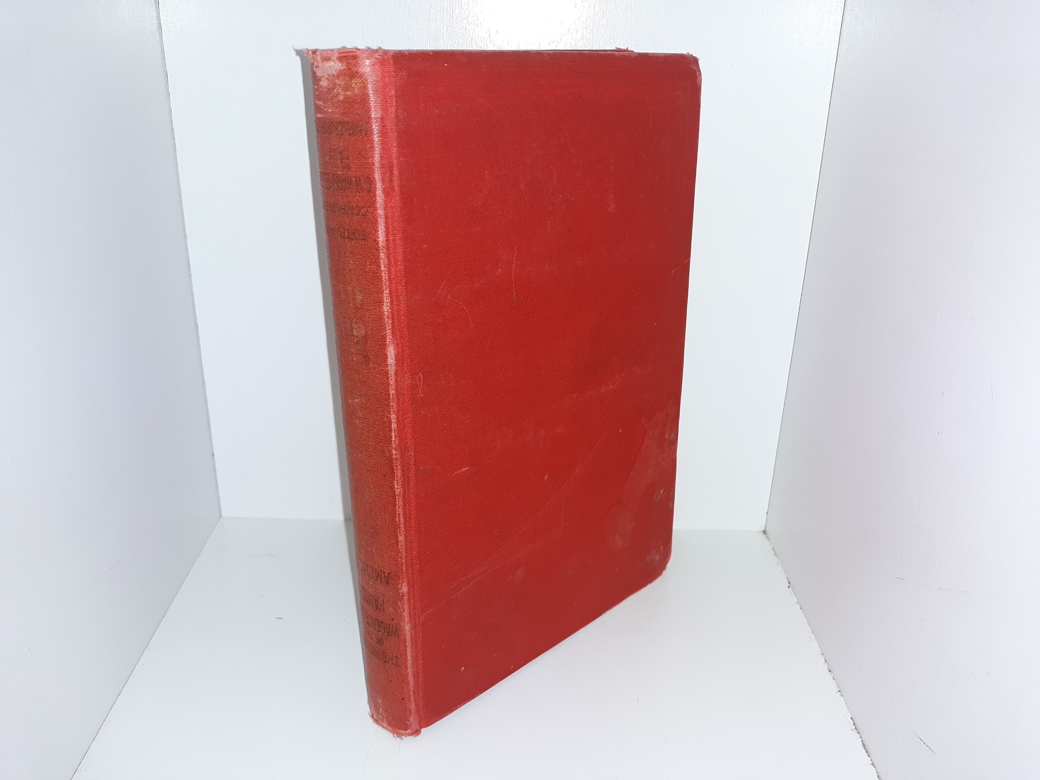 Fair condition, red hardcover with no dust jacket. The cover has stains, scuff marks, scratches, some large bubbles, and the corners and edges are bent, torn and frayed. The internal binding is torn and loose. The flyleaf has been torn from the binding, but is still included. The title page has writing in pencil and some eraser marks. One of the illustration pages has been torn from the binding, but is still included, and said page has long tears, tape, and stains. There are underlining and marks throughout the book in pencil.