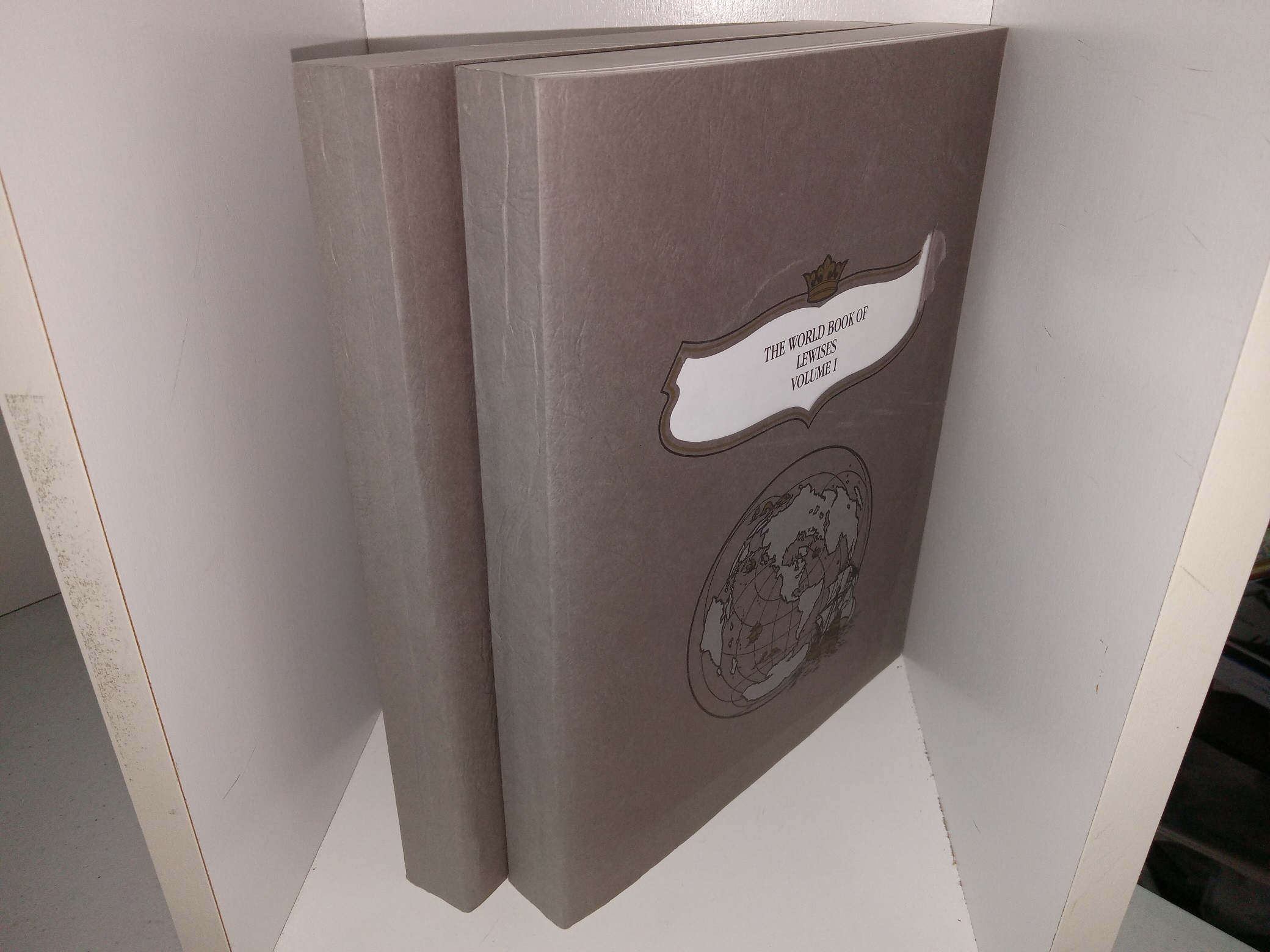 2 fair-good condition, large, brown softcovers. The covers have some scuffing, fading, a tear, patches of adhesive residue, and some stains. The first pages have writing in pencil and eraser marks. Text and illustrations throughout are clean, clear, and legible.