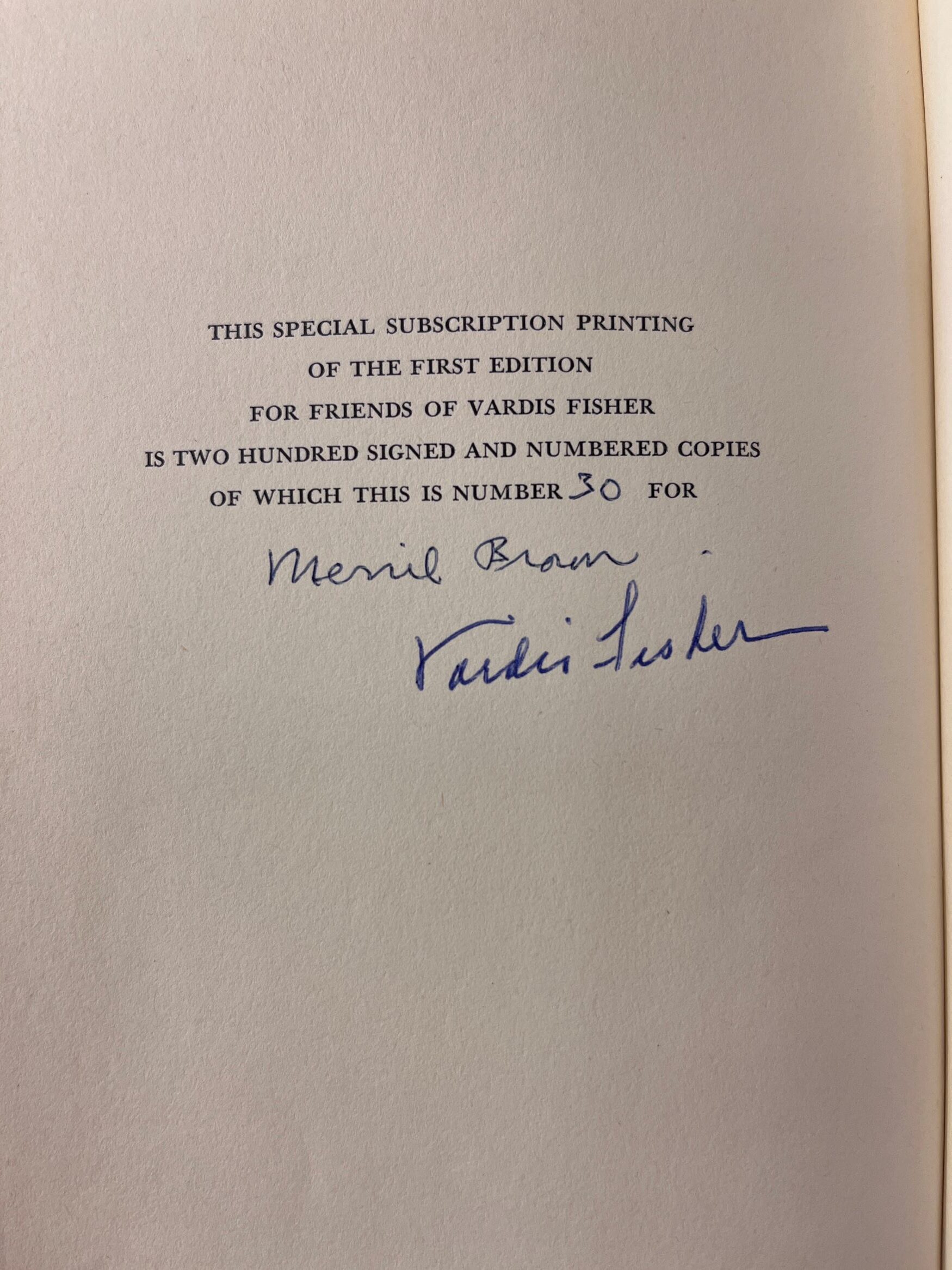 1958 – My Holy Satan: A Novel Of Christian Twilight – Vardis Fisher (Signed First Edition) – Hardcover