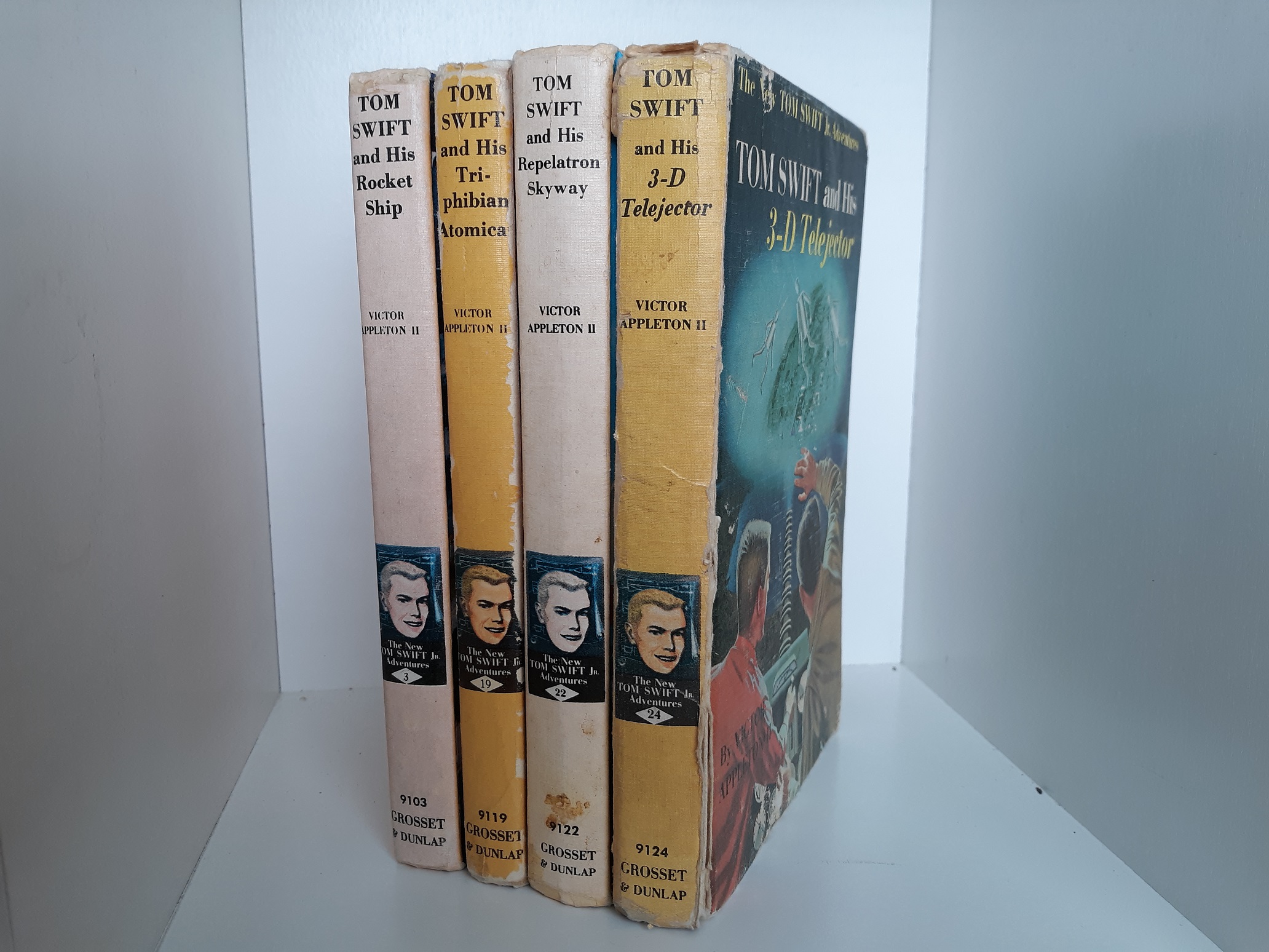 4 , Fair condition hardcovers with no dust jackets. The covers have stains, fading, tears, fraying, scuff marks, and scratches. Some of the books have stains (some having heavier stains than others) throughout that do not interfere with the legibility of the text or illustrations. The flyleaves have writing in pencil, and one of them has had the flyleaves colored in with colored pencil………………………………….v1 Bx1600F