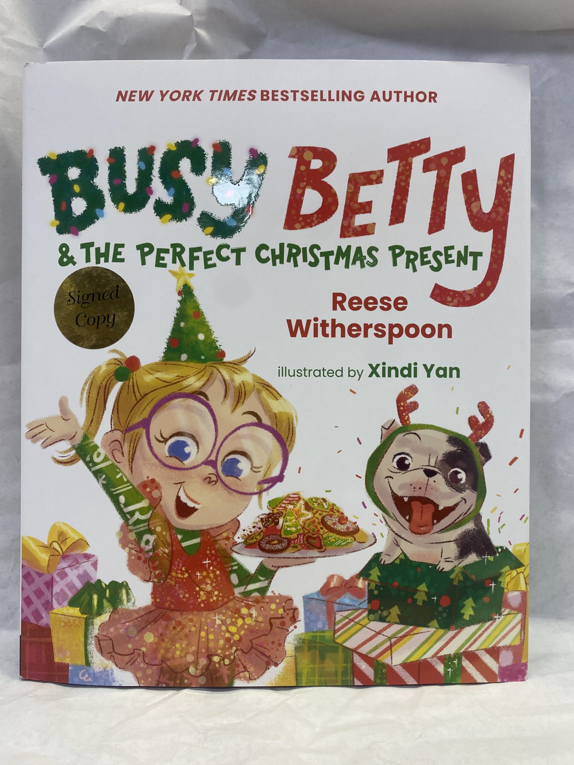 Busy Betty and the Perfect Christmas Present by Reese Witherspoon and illustrated by Xindi Yan. Hardcover with dust jacket, 2024, Signed copy.