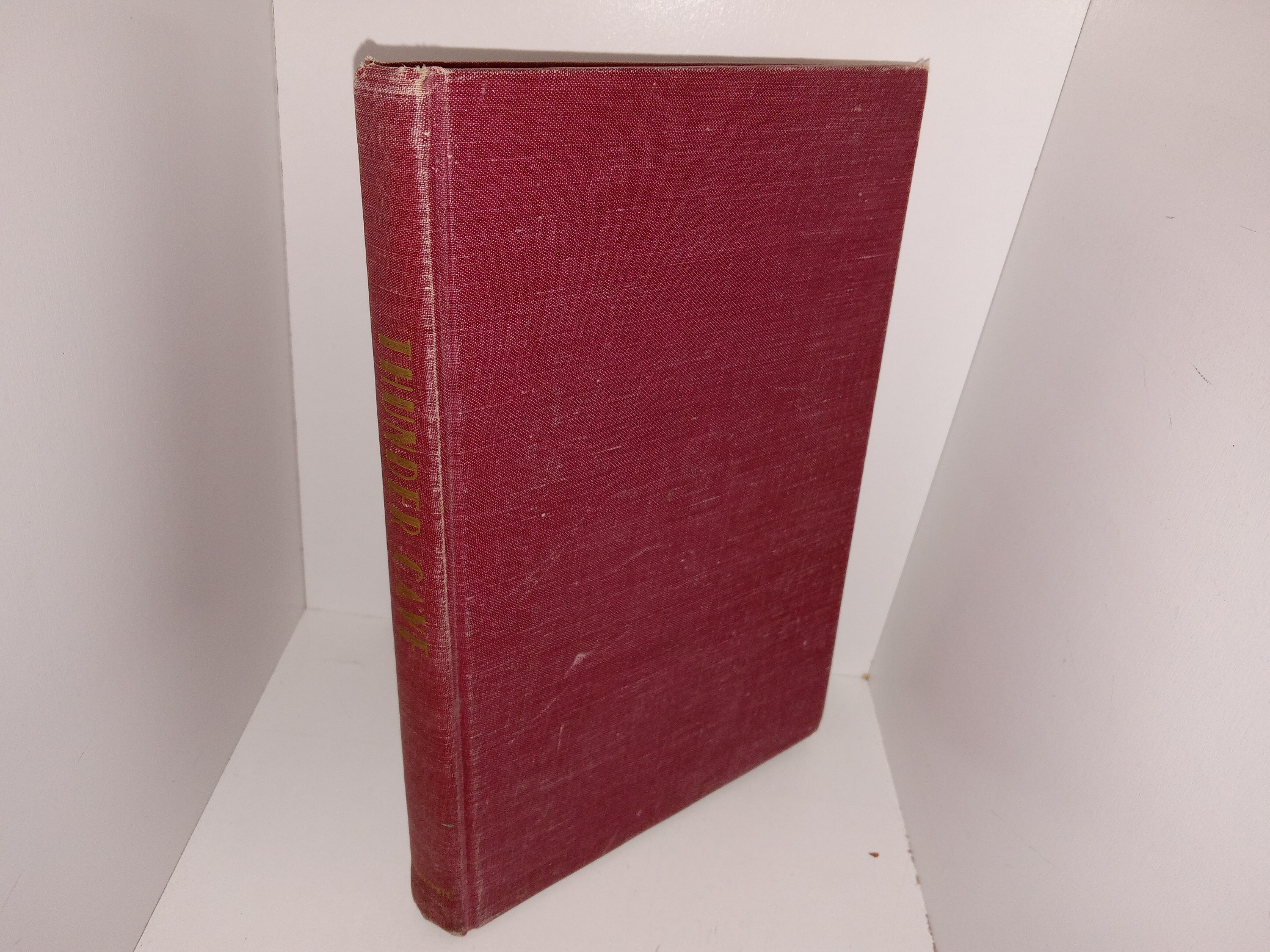 Fair condition, burgundy hardcover with no dust jacket. The binding is crooked. The cover has scuffing, stains, scratches, and some tearing and fraying at the corners. Some pages have stains or wrinkling due to water damage. The front inside cover has pen marks. The front flyleaf has writing in pencil, and some eraser marks. The page after the title page has writing in pen.