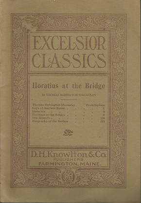 Excelsior Classics; D. H. Knowlton & Co. Publishers, Farmington, Maine, not dated [but most likely around the year 1900], 34 page booklet. Very good condition.