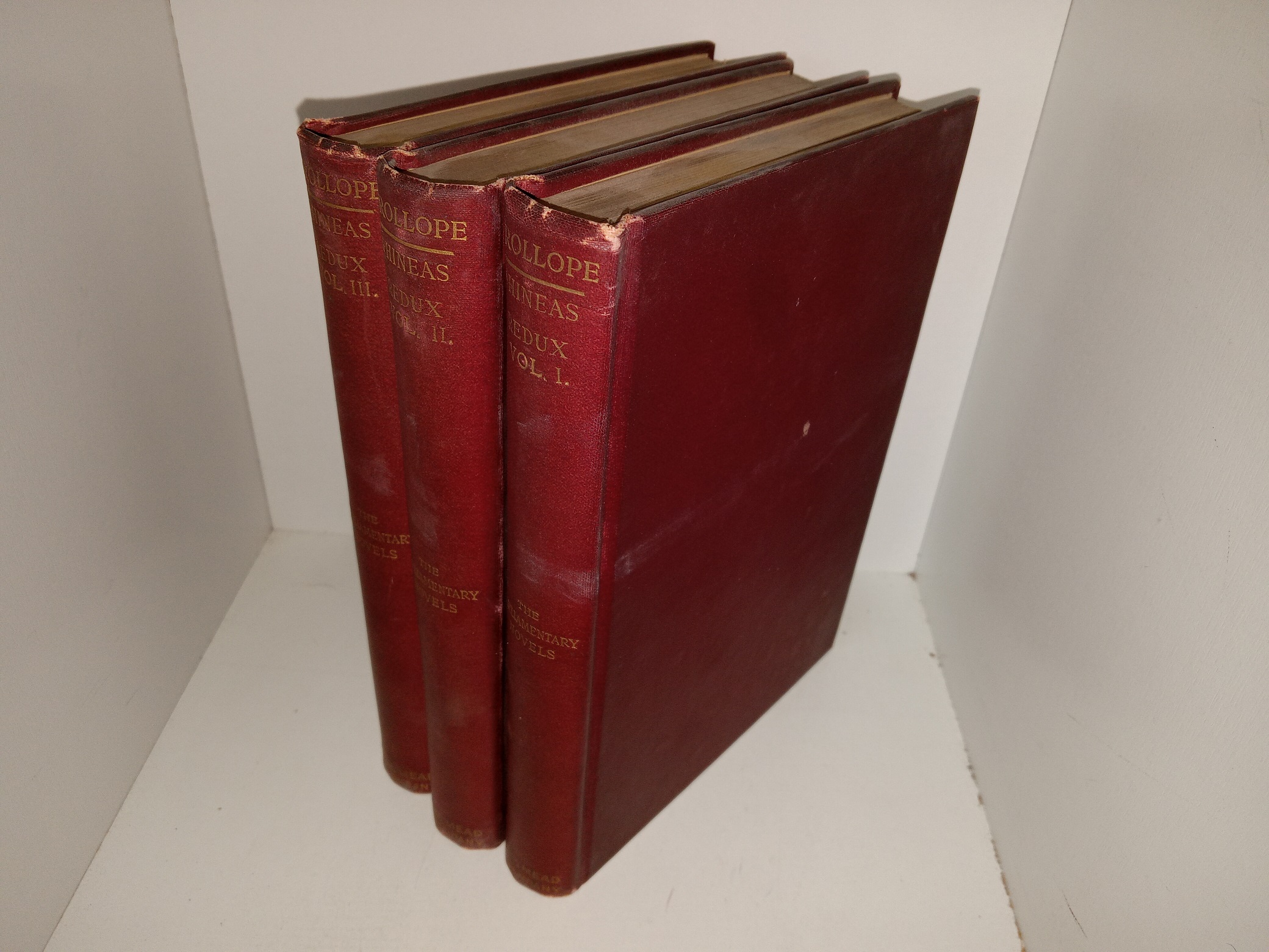 3 fair condition, burgundy hardcovers with no dust jackets. The covers have scuffing, pale scuff marks, and some fading. Some pages have minor stains. The front flyleaves have writing in pencil and eraser marks.