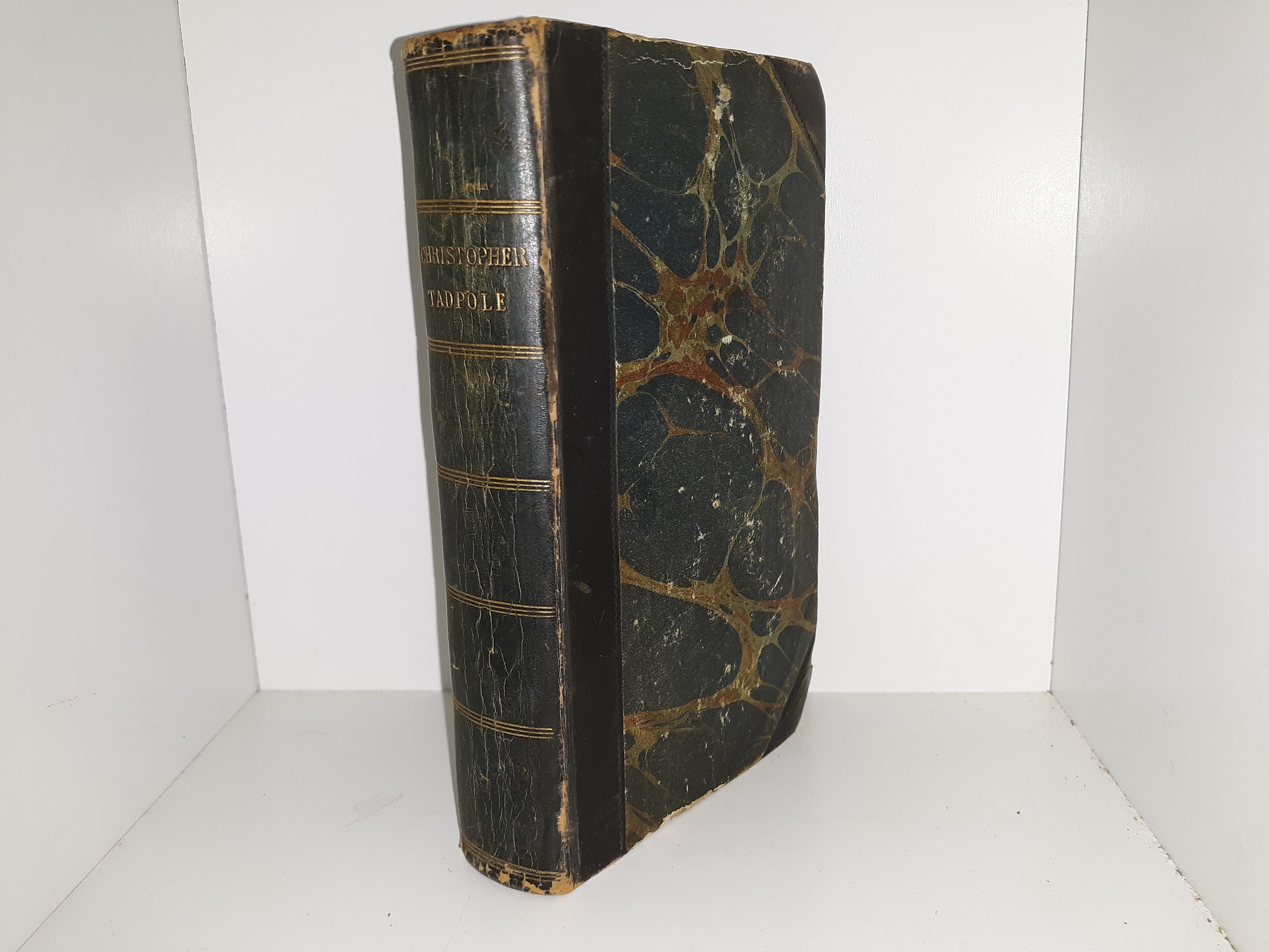Fair condition, 3/4 leather, hardcover book with a black spine, and no dust jacket. The cover has scuffing, fading, bent or crushed corners, wrinkling on the spine, and tears and fraying at the corners and edges. The inside covers and flyleaves have stains. The front flyleaf has writing in pencil and eraser marks. Text throughout is legible, though a few pages have slightly faded text, but it is still readable.