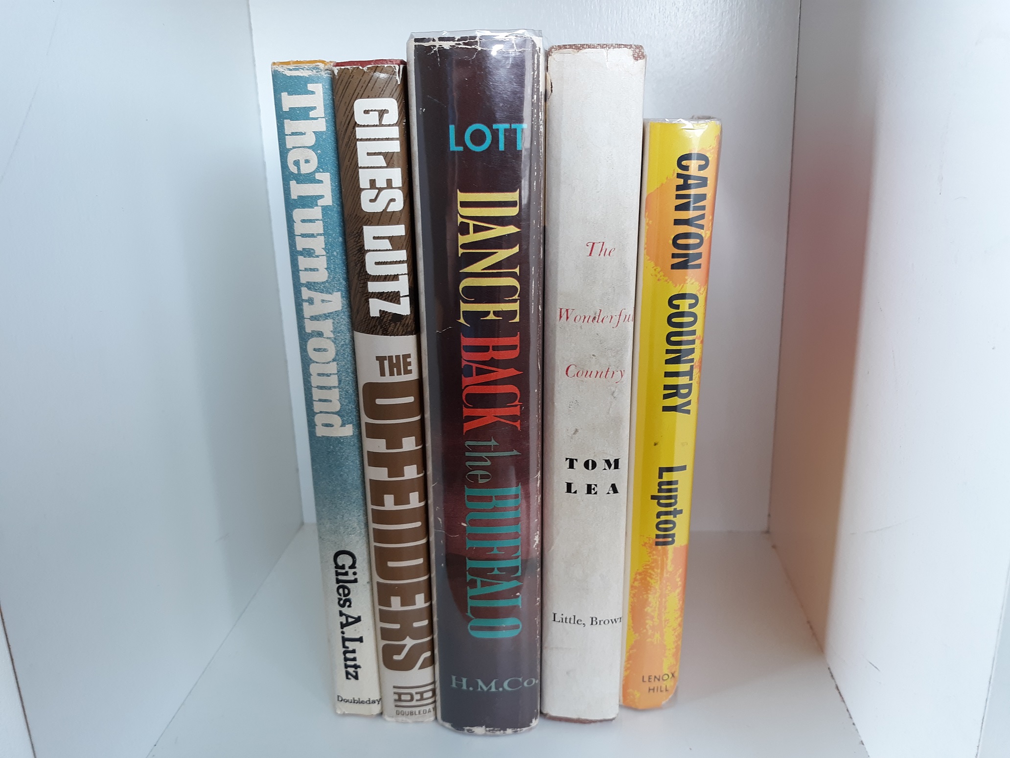 Good condition, blue and white hardcover with a dust jacket. The dust jacket has some fading, scuffs, some minor tears at the edges and corners, and some minor stains. The inside front cover has an old price sticker, adhesive residue, writing in pencil, and eraser marks.