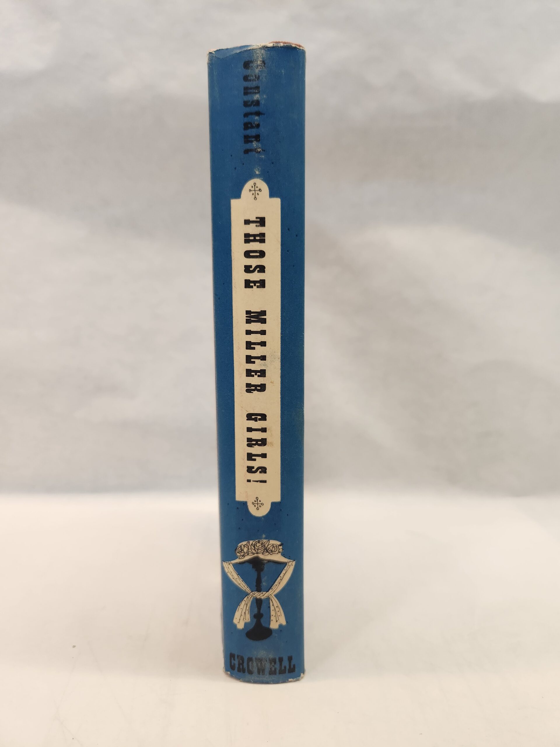 Those Miller Girls! (1st Edition Printing, Hardcover w/ Dust Jacket) No marks/writing on pages. Corners and edges show some shelf wear. Binding is good. Slight bend that causes the book to not lay at a 90 degree angle (see pic for example). Cover, front and back, has some smudges, light scuffing, and light scratch marks.