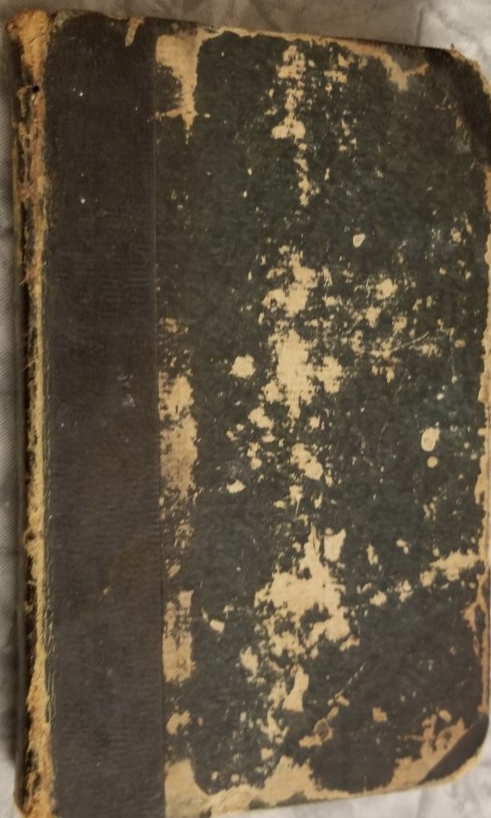 Small book in French; as pictured; quite worn binding; but binding is holding okay; the first blank page is slightly loose; foxing and slight water damage to some page corners.
