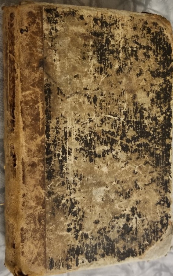 Two title pages: 1 in English and 1 in German. Leather spine; marbled boards are heavily worn, as is the spine. Binding is strong. Two names inked inside the front cover.